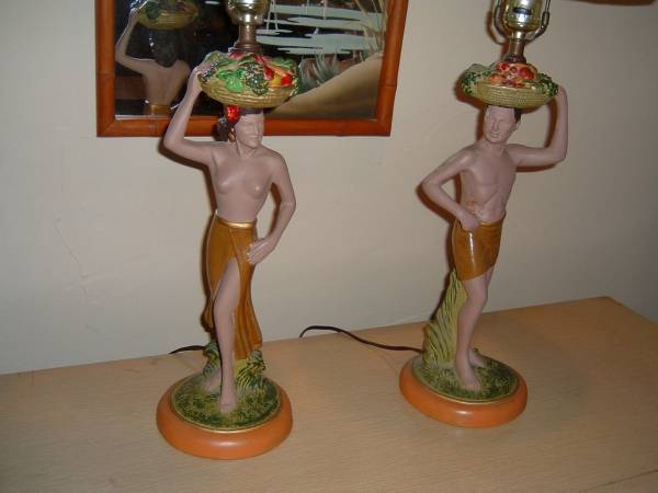 こちらのお品は大変に珍しいハワイアンダンサーのランプで今となってはアメリカ本土でもまず見かけることのできない大変にレアなお品です。しかもペアー(2体SET)で状態も良いものはより見つける事は不可能に近いと思います。探されていた方、コレクターの方、是非この機会に如何でしょう。