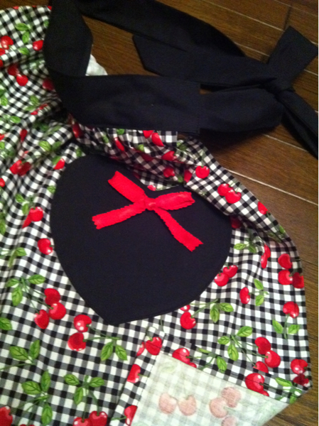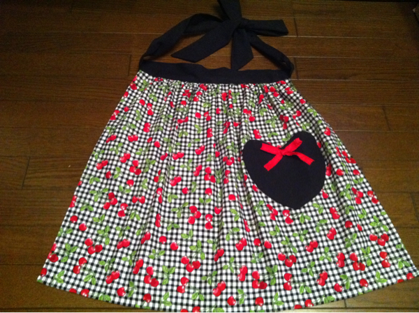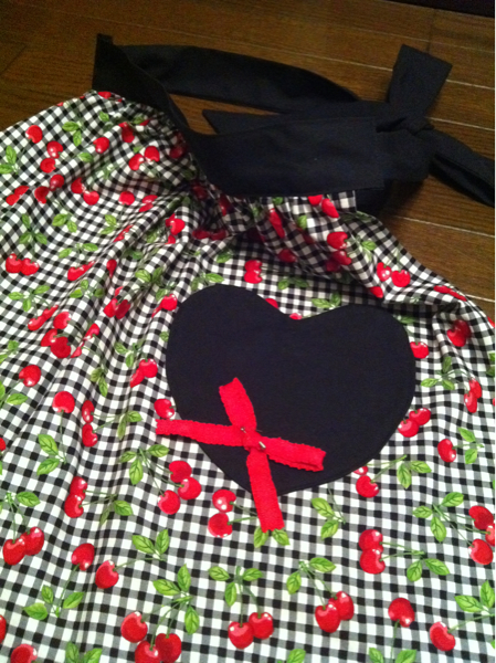 アメリカで購入した生地でエプロンを作りました!コットン素材なので洗濯可能です。ハートの ポケットが可愛いです