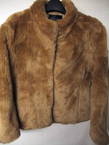 Aller Bien フェイクファージャケットです。色は明るいブラウン。◆サイズはMで着丈約53.5cm・肩幅約42cm・袖丈約54cm・身幅約53cmです。◆USEDですが状態は良好です。◆