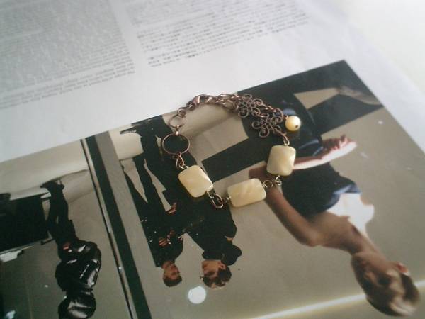 アート・クチュール・・シリーズです♪大人色のベージュ・・シックなマザーオブパールのブレスレット2点セットです♪画像のように色々な組み合わせで楽しんでいただけます♪14×10ミリのスクエアカットのマザーオブパールはお花やリングのデザインチェーンを合わせて可憐な表情です♪長さは全長23センチ位で調節自由です♪♪繊細なチェーンには4ミリのマザーオブパールを合わせてキュートな表情です♪長さは16センチ+アジャスター6センチで最長22センチ位です♪3本セットや単品やお揃いのネックレスも出品しています♪♪シンプルで長く着けていただけるデザインを考えて作りました♪ハンドメイドをご理解頂いてノークレーム、ノーリターンでお願いします
