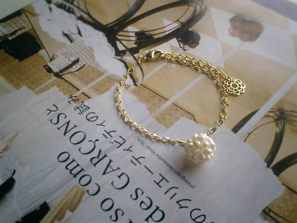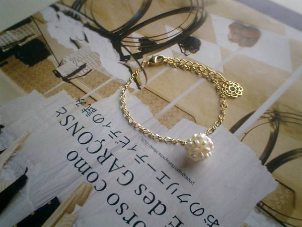 繊細なディテール・・シリーズです♪オフホワイトの淡水パール・・オフホワイトの淡水パールのブレスレットです♪華奢なチェーンのトップは12ミリ位の淡水パールボールを合わせて可憐な表情です♪長さは16センチ+アジャスター6センチで最長22センチ位です♪お揃いのブレスレットやネックレスやピアスも出品しています♪♪シンプルで飽きのこないいつまでも着けられるデザインを考えて作りました!ハンドメイドをご理解頂いてノークレーム、ノーリターンでお願いします