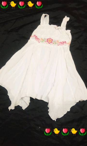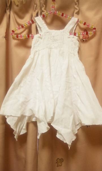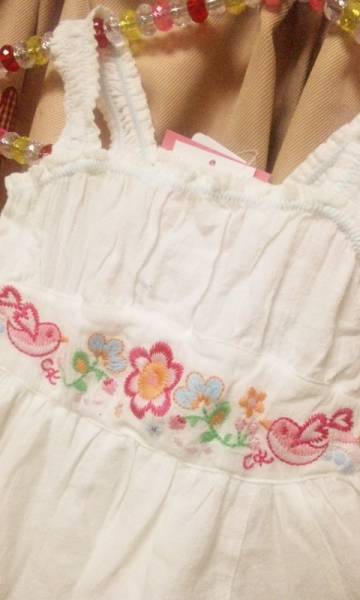 ◆カラフルな胸刺繍に裾がアシメライン♪ふわっと涼しげコットン素材も可愛いキャミソールワンピース♪肩紐や胸周りはゴム入で楽な着心地です