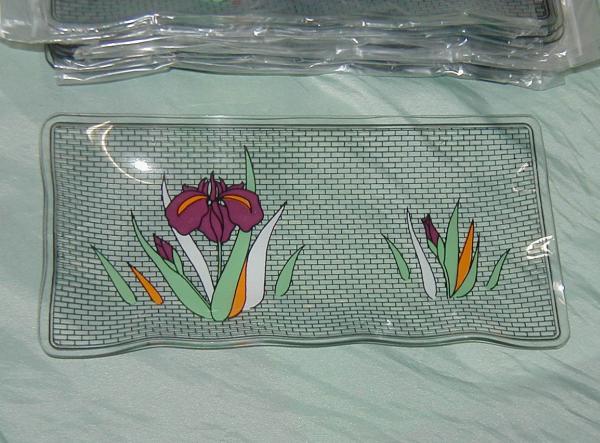 【即決】しょうぶ絵柄ガラス製角皿20cm おしぼり皿にも