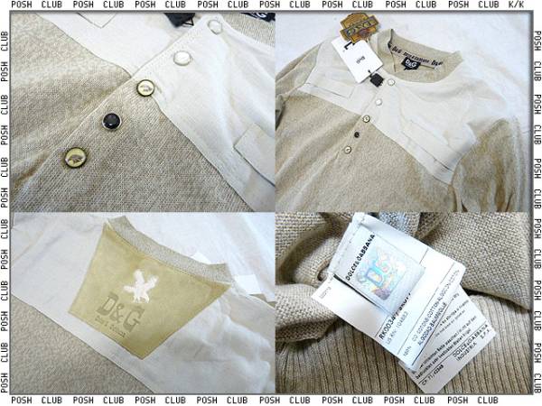 <新品・本物・直営店買付商品>D&G*ドルチェ&ガッバーナ*Tシャツ サイズ:XL 平置き:肩幅49cm、胴53.5cm(一周107cm)丈68cm、袖66.5cm、袖口7.5cm(一周15cm)材質:コットン90%xスゥエード革10% 備考:前ボタン!フェイクポケット2ヶ所付き!予備ボタン付き!!MADE IN ITALY