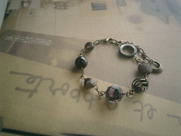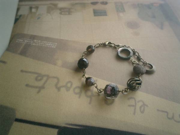 ノスタルジックに染まって・シリーズです♪オニキスと薔薇のブレスレットです♪8ミリ、10ミリのランダムカットのオニキスに薔薇模様のベネチアビーズやモーヴピンクのチェコビーズやパープルのモダンビーズやグレーシェルのリングを合わせてオリエンタルにロマンチックしています♪長さは全長23センチ位で調節自由です♪♪お揃いのネックレスも出品しています♪シンプルで飽きのこないいつまでも着けられるデザインを考えて作りました!ハンドメイドをご理解頂いてノークレーム、ノーリターンでお願いします |