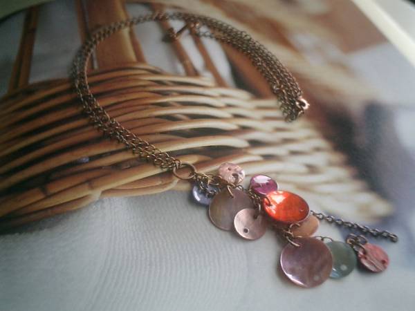 恋愛映画のレシピ・・シリーズです♪シックな色を集めて・・ダークパープルやダークレッドやボルドー、サーモンピンクやブルーグレーなどシック色のシェルボタンを集めたキュートなネックレスです♪9ミリから17ミリ位までの大きさ違いのシェルがさりげなく巴里っぽい雰囲気です♪長さは60センチ+アジャスター12センチで最長72センチ位です♪トップは9センチ位です♪♪お揃いのブレスレットも出品しています♪シンプルで飽きのこないいつまでも着けられるデザインを考えて作りました!ハンドメイドをご理解頂いてノークレーム、ノーリターンでお願いします
