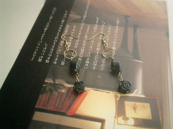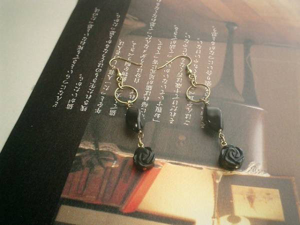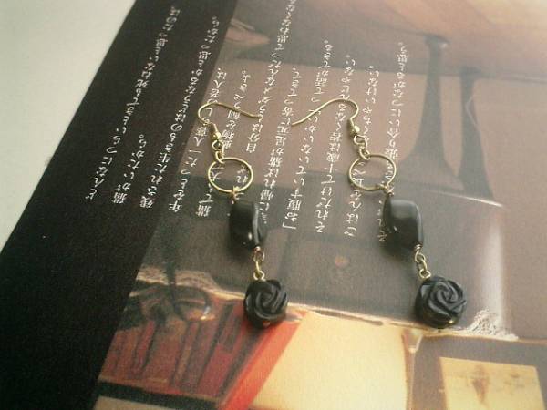ロゼッタの仮縫い・・シリーズです♪秋のオニキス・・シックなオニキスのピアスペアセットです♪♪10ミリ位の両面薔薇とツイストナツメのオニキスは可憐な表情です♪♪長さは全長7・5センチ位です♪イヤリングにも変更出来ます♪お揃いのピアスやネックレスやブレスレットも出品しています♪♪シンプルで長く着けていただけるデザインを考えて作りました♪ハンドメイドをご理解頂いてノークレーム、ノーリターンでお願いします
