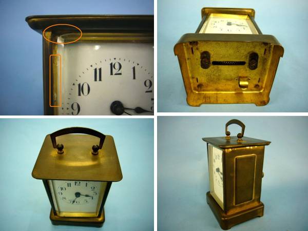 | 商品紹介 | お詳しい方に方にお願いします。 専門外なので知識がありません。 欠品、コワレ、不具合、付属品などは解りかねますので 画像でご判断下さる様お願い致します。 解る範囲内の説明になります。 ご了承下さい。 目覚まし付きではありません。 ゼンマイ巻きはありません。 お手持ちのものをご兼用下さい。 ゼンマイは生きています。 可動しますが途中で止まる時もあります。 時間精度は確認していません。 現状売りとなります。 分解しての検品はしていませんので その旨、ご了承頂ける方にお願い致します。 (写真は解り易いように複数の位置から写しています。1点の出品です。) (写真では実際の色が出にくい場合がありますが、ご了解下さい。) 裏扉のツマミ、留め金が欠品して代用補修してあります。(写真1・2枚目枠内参照) 扉の半田跡が新しいので、扉ごと変えられているかもしれません。 画像でご判断下さる様お願いします。 ガラスに欠けがあります。(写真3枚目枠内参照) 中古品ですので経年の色褪せ、ヨゴレ、小キズ、 小凹み、曲り、スレ、サビ、メッキの落ちなどがあります。 製造時による型ムラ、凹凸などがあります。 他にも難があるかも知れません。 その場合はご容赦下さい。 大きなダメージはないと思われますが 見落とし、書き落としもあろうかと思いますので 状態、欠品などは画像にてご判断下さい。 写真のものが全てです。 写真にてご判断下さる様お願い申し上げます。 落札時に出品者からのメッセージが届きますのでご覧下さい。 (マイオークションの通知設定を非通知にしている場合は届きません) メールが届かない場合はお手数ですがご連絡下さい。 落札後のキャンセルはお受けできません。 |