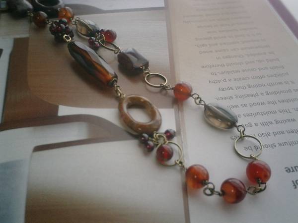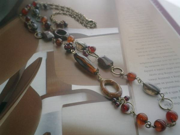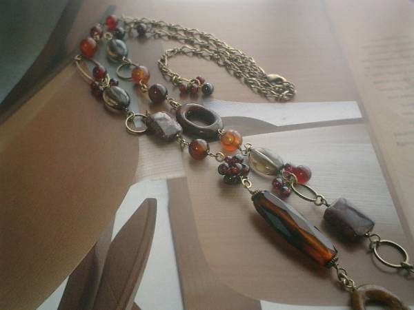 秋色・デッサン・・シリーズです♪大切な時間・・深い赤でまとめたシックなネックレスです♪ガーネットやカーネリアンやブラウンオニキスやスモーキークォーツやブロンザイトやピーターサイトなどダークレッドやオレンジ、ブラウンやダークグレーなどニュアンスのある色を集めて秋のロマンチックしています♪ガーネットは4ミリ、6ミリの丸玉やボール玉、カーネリアンは6ミリ、8ミリの丸玉、ブロンザイトは14×10ミリのスクエア、ブラウンオニキスは30×10ミリのナツメカット、ピーターサイトは18×13ミリのリング、スモーキークォーツは14×10ミリのオーバルです♪長さは全長92センチ位で調節自由です♪2連にされても素敵です♪お揃いのブレスレットやピアスも出品しています♪シンプルで合わせやすいデザインを考えて作りました♪ハンドメイドをご理解いただいてノーリターン、ノークレームでお願いします♪