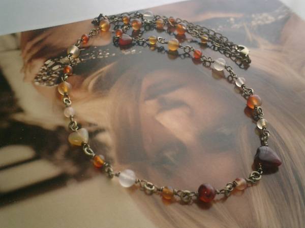 アンニュイ気分で・・シリーズです♪オリエンタルロマンへ・・クラシカルなカーネリアンのネックレスです♪4ミリ、6ミリの丸玉、大きさ違いのハートなどデザイン違いのカーネリアンを集めてオリエンタルな表情です♪長さは全長57センチ位で調節自由です♪チョーカー風にされてもブレスにされても可愛いです♪お揃いのネックレスやブレスレットも出品しています♪シンプルで飽きのこないいつまでも着けられるデザインを考えて作りました!ハンドメイドをご理解頂いてノークレーム、ノーリターンでお願いします