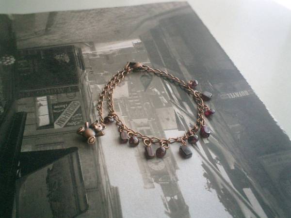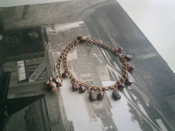 妖精のため息・・シリーズです♪茨姫の森へ・深い赤のガーネットのブレスレットです♪4ミリの丸玉、5×3ミリのスクエア、4ミリのボタンなどデザイン違いのガーネットを合わせて小粋な表情です♪長さは全長22センチ位で調節自由です♪お揃いのネックレスも出品しています♪♪シンプルで飽きのこないいつまでも着けられるデザインを考えて作りました!ハンドメイドをご理解頂いてノークレーム、ノーリターンでお願いします