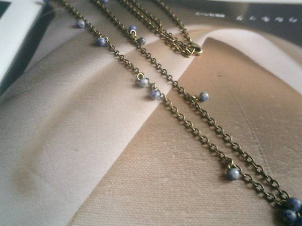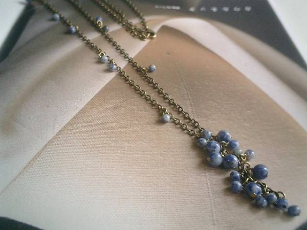 アンニュイ気分で・・シリーズです♪可憐な青い小花・・爽やかなデニムラピスのネックレスです♪4ミリと6ミリの丸玉をランダムに合わせてラリエット風のデザインです♪カジュアルにもロマンチックにも楽しんでいただきたいです♪長さは70センチ+アジャスター12センチで最長82センチ位です♪トップは5・5センチ位です♪♪お揃いのブレスレットやイヤリングも出品しています♪シンプルで飽きのこないいつまでも着けられるデザインを考えて作りました!ハンドメイドをご理解頂いてノークレーム、ノーリターンでお願いします