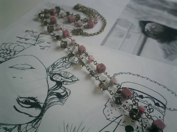 イノセントなパターン・・シリーズです♪キューブ&キューブ・・シックなロードナイトとスモーキークォーツのネックレスです♪4ミリ、6ミリのキューブのロードナイトとスモーキークォーツがキュートな表情です♪トップは25ミリ位のスモーキークォーツのウェーブリングです♪長さは全長75センチくらいで調節自由です♪♪お揃いのブレスレットも出品しています♪♪シンプルで飽きのこないいつまでも着けられるデザインを考えて作りました!ハンドメイドをご理解頂いてノークレーム、ノーリターンでお願いします