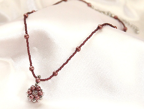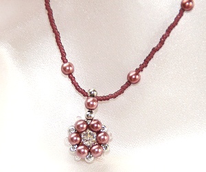 ё櫻ёデザインネックレス♪ビーズアクセサリー♪ワインレッド♪003:パーティードレス,フォーマルドレス,パワーストーンアクセでお洒落に