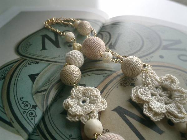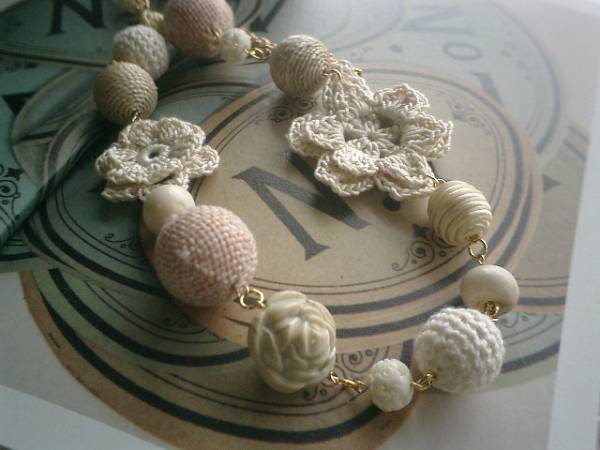 女の子チック・・シリーズです♪マットなホワイト・ベージュのネックレスです♪ホワイト・ベージュ色でまとめてふんわりやさしい表情です♪32ミリから48ミリ位の大きさ違いデザイン違いの編みフラワーには8ミリから20ミリ位までの樹脂薔薇や編みボールや麻ボールや透かしボーンを合わせて大人のロマンチックしています♪長さは全長66センチ位で調節自由です♪♪お揃いのネックレスやブレスレットも出品しています♪シンプルで飽きのこないいつまでも着けられるデザインを考えて作りました!ハンドメイドをご理解頂いてノークレーム、ノーリターンでお願いします