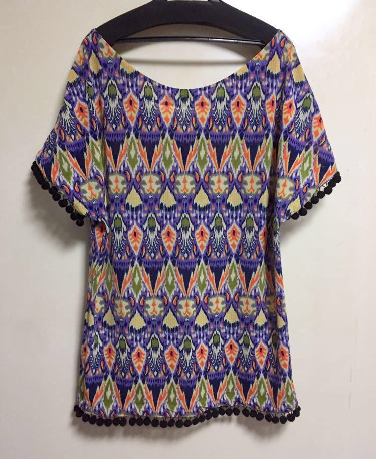 綺麗なパープルのエスニック柄チュニックワンピです。