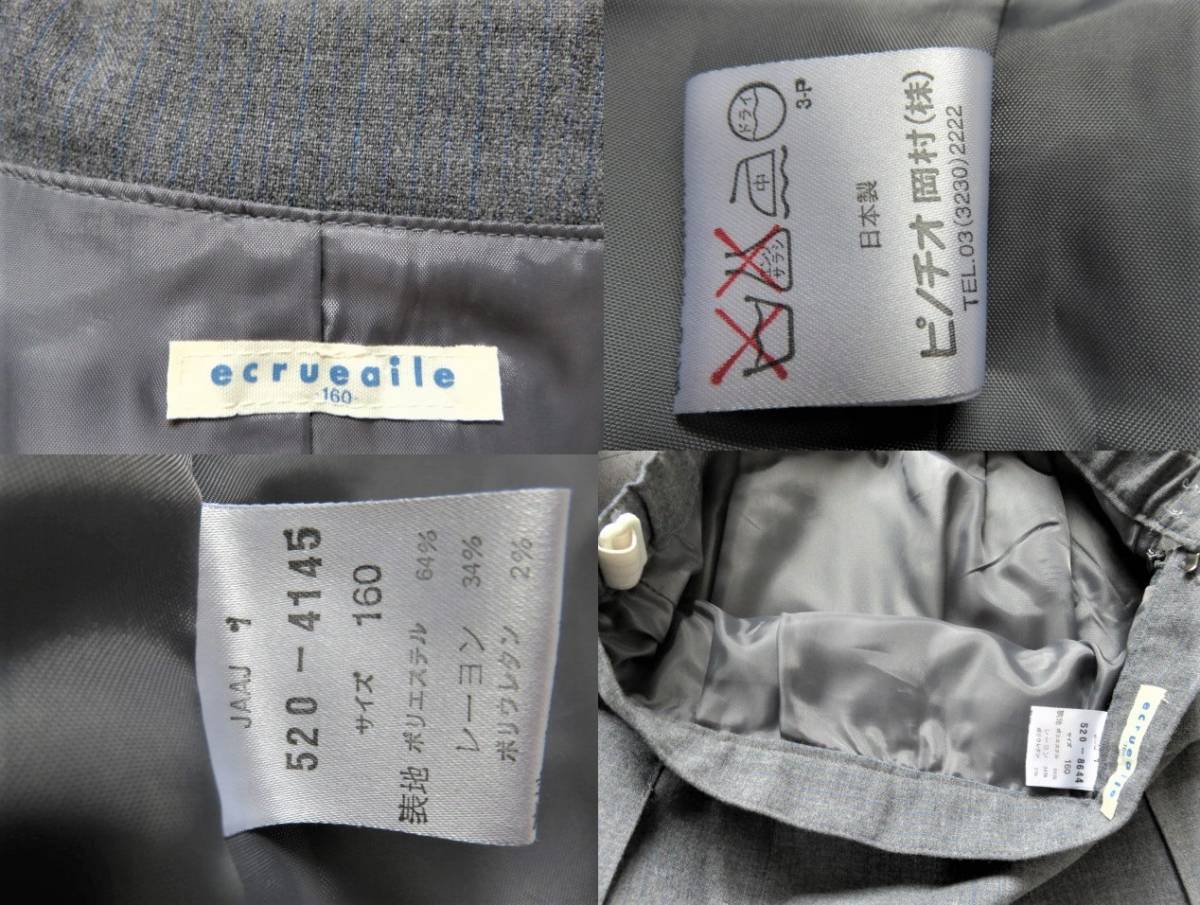 上質美品【ecrueaile】ピノチオ岡村 高級 ジュニア スーツ 160サイズ グレー ティーンスーツ 卒業式 法事 法要 学生 小さなレディース s231