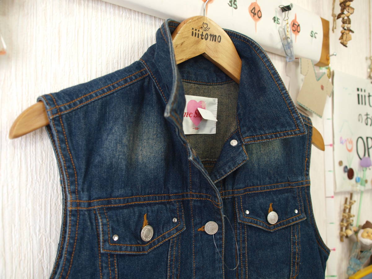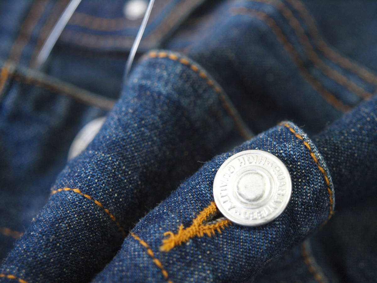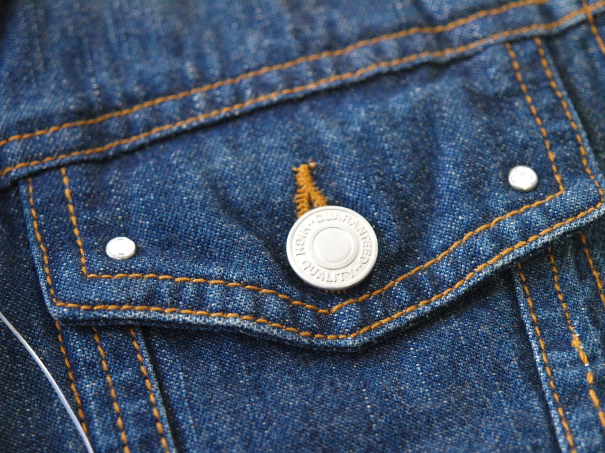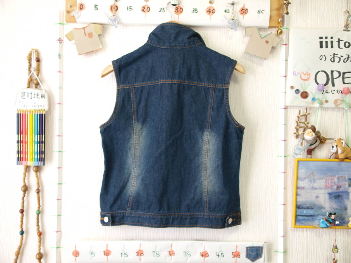 商品の補足説明(主観的な内容も含む) 2個目のボタンのところにピン?(札を付ける輪)が付いた状態でしたので、おそらく未使用品です。 ジーンズと同じくらいの厚さのデニム生地です。 ポケットふたにキラリと光るダイヤもどき?が付いています。(しっかりと付いているので取れにくいと思います。) ボタンをしたときに右が上になります。(女子または女性用です) |