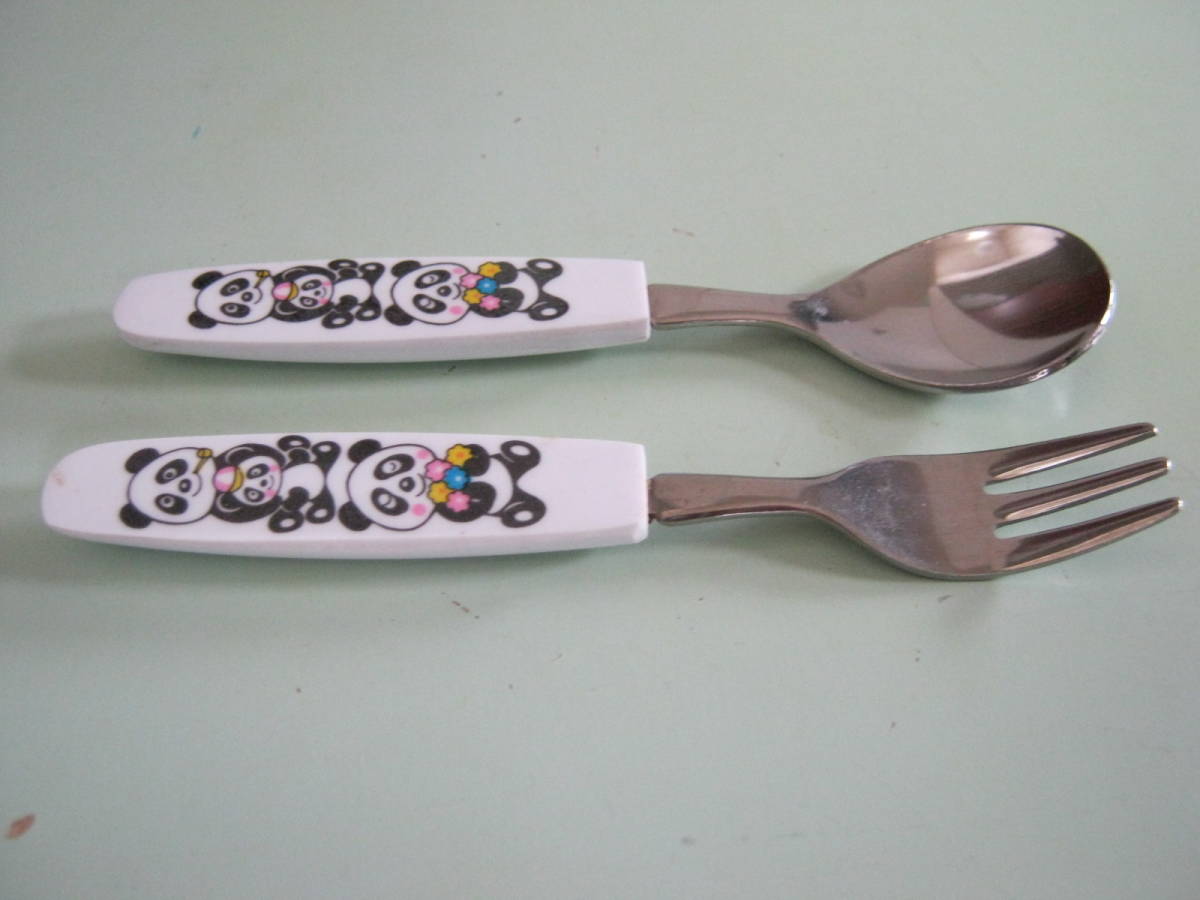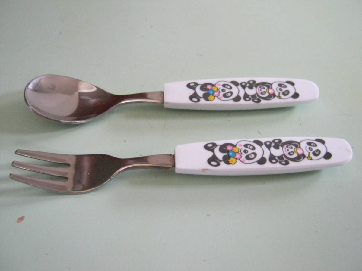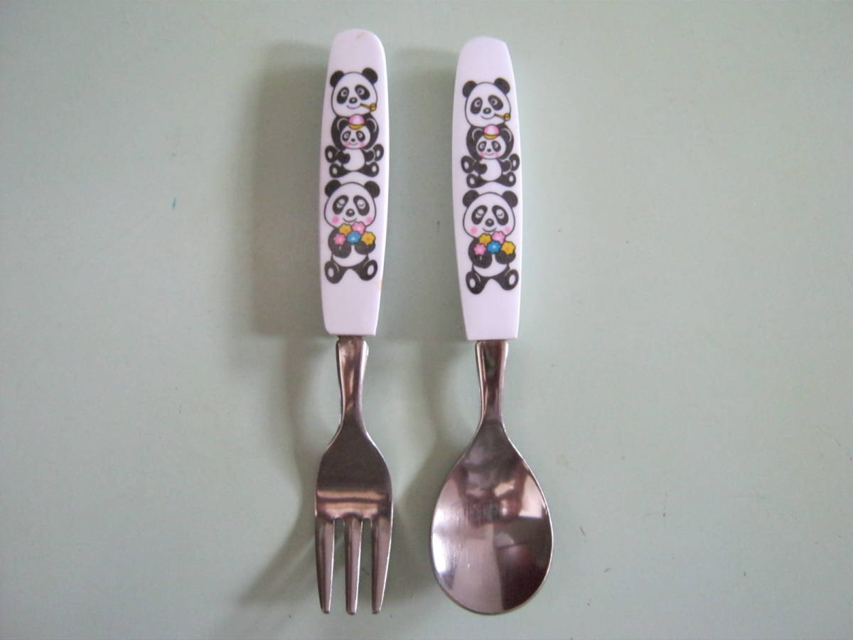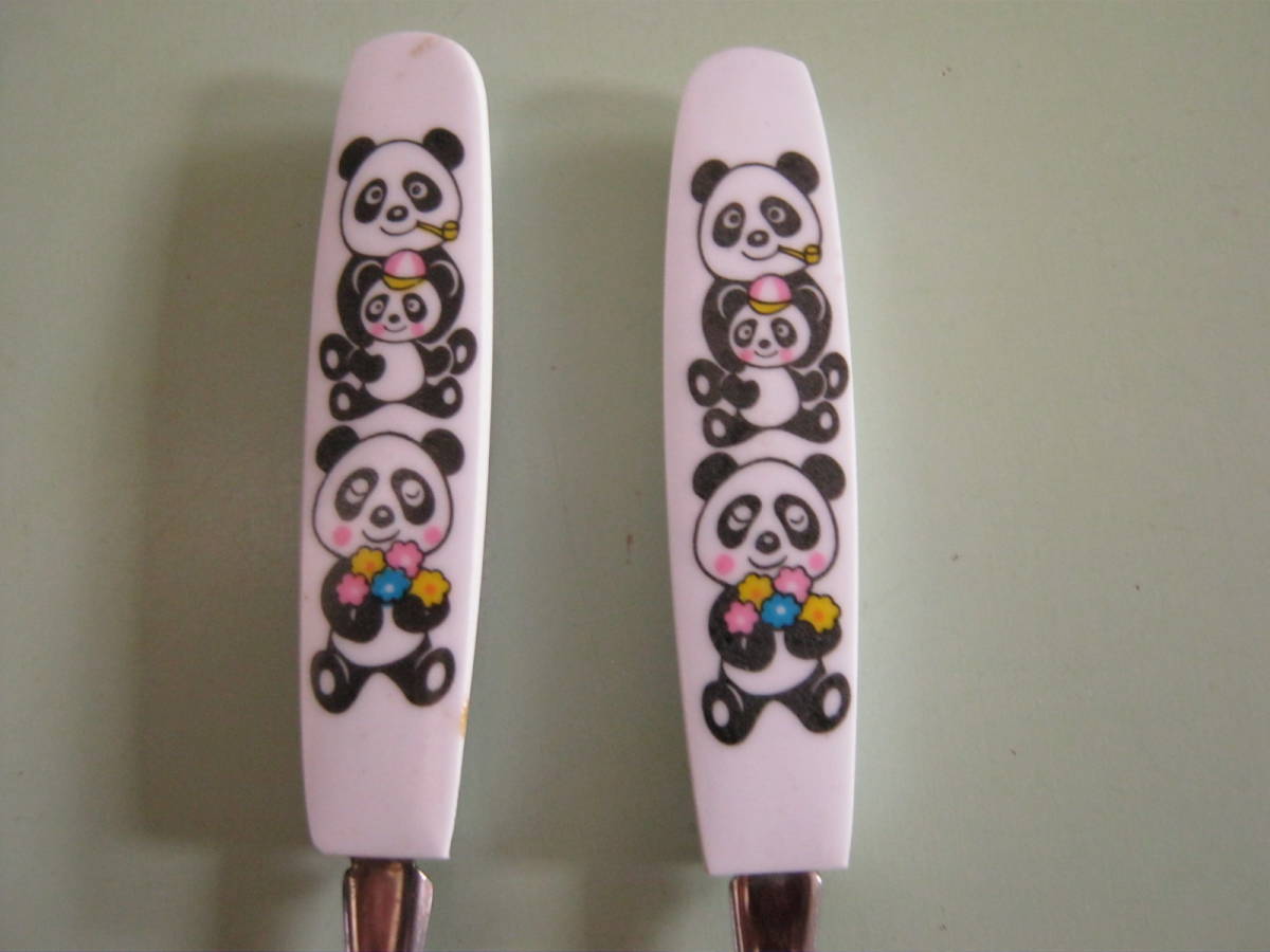 メーカー不明【パンダ柄のフォークとスプーン 2本セット】1970年代物