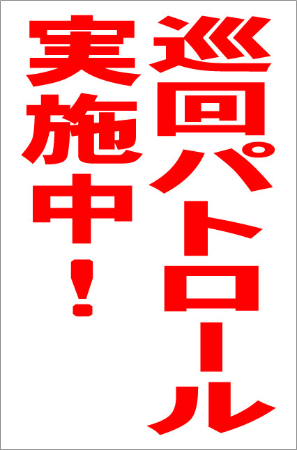 お手軽縦型看板「巡回パトロール実施中(赤)」屋外可 送料込み