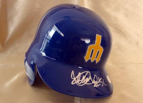 シアトル・マリナーズ在籍時のイチロー選手の直筆サイン入りターンバック(復刻版)・オーセンテックヘルメットです。