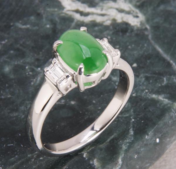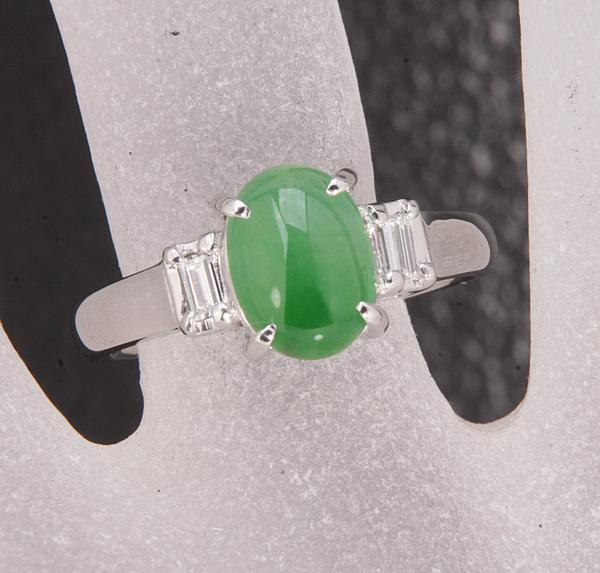 《質屋出品》Pt900★光沢のある天然翡翠1.82ctデザインリング★k-3206