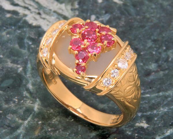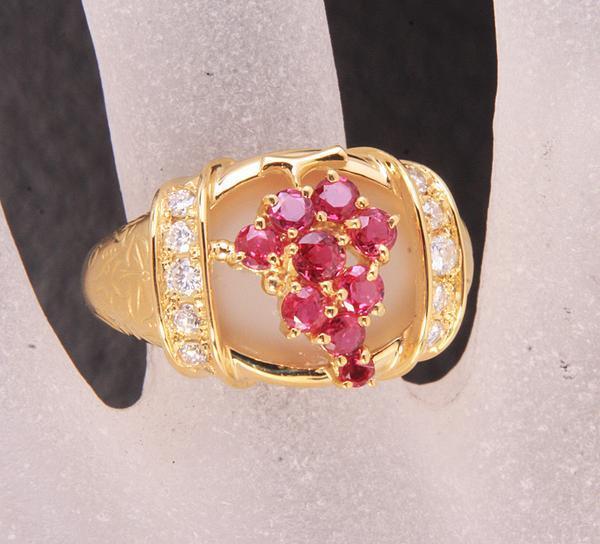 《質屋出品》K18★天然ルビーの葡萄デザインリング★k-3974