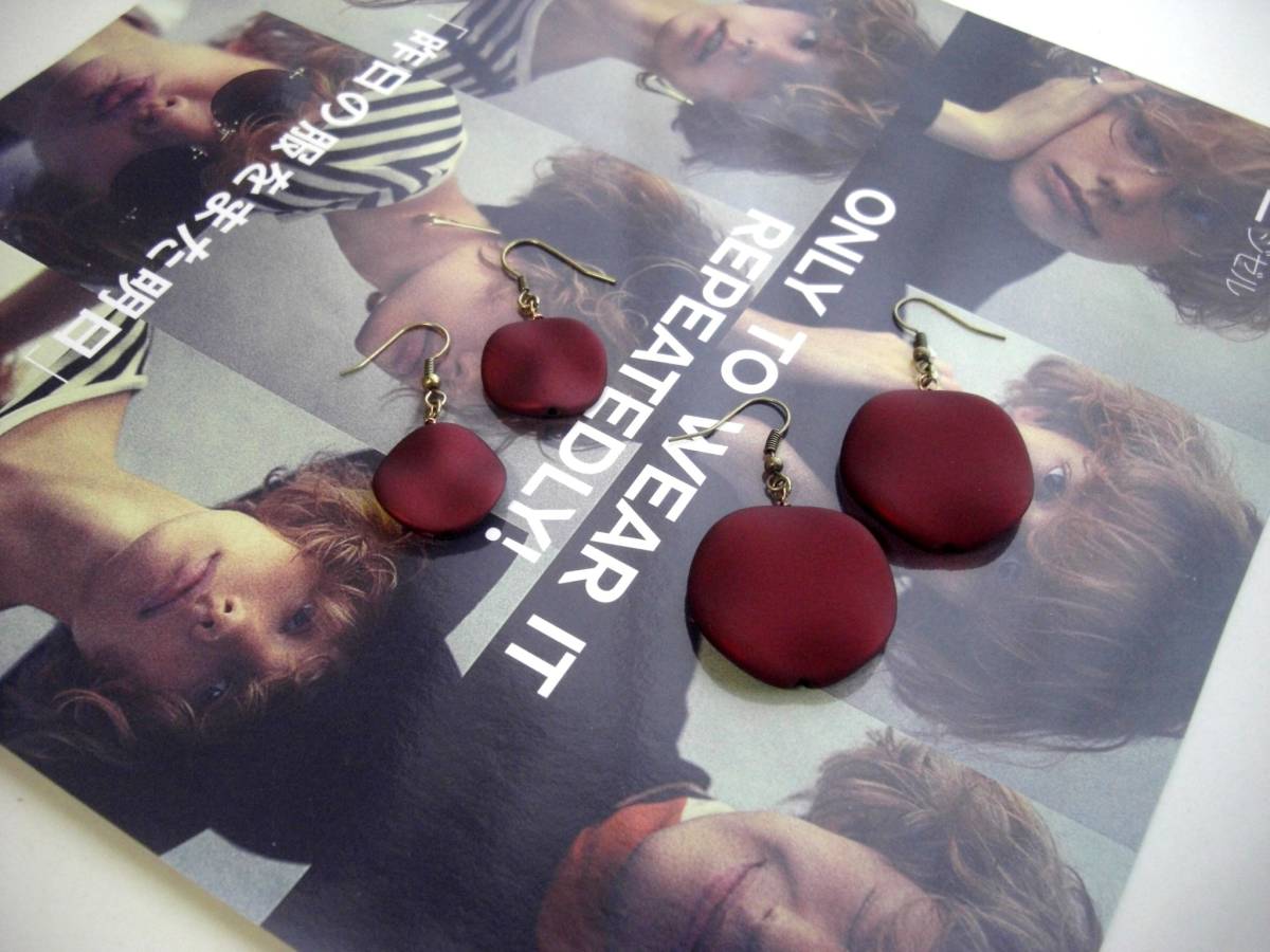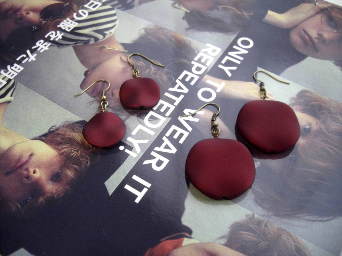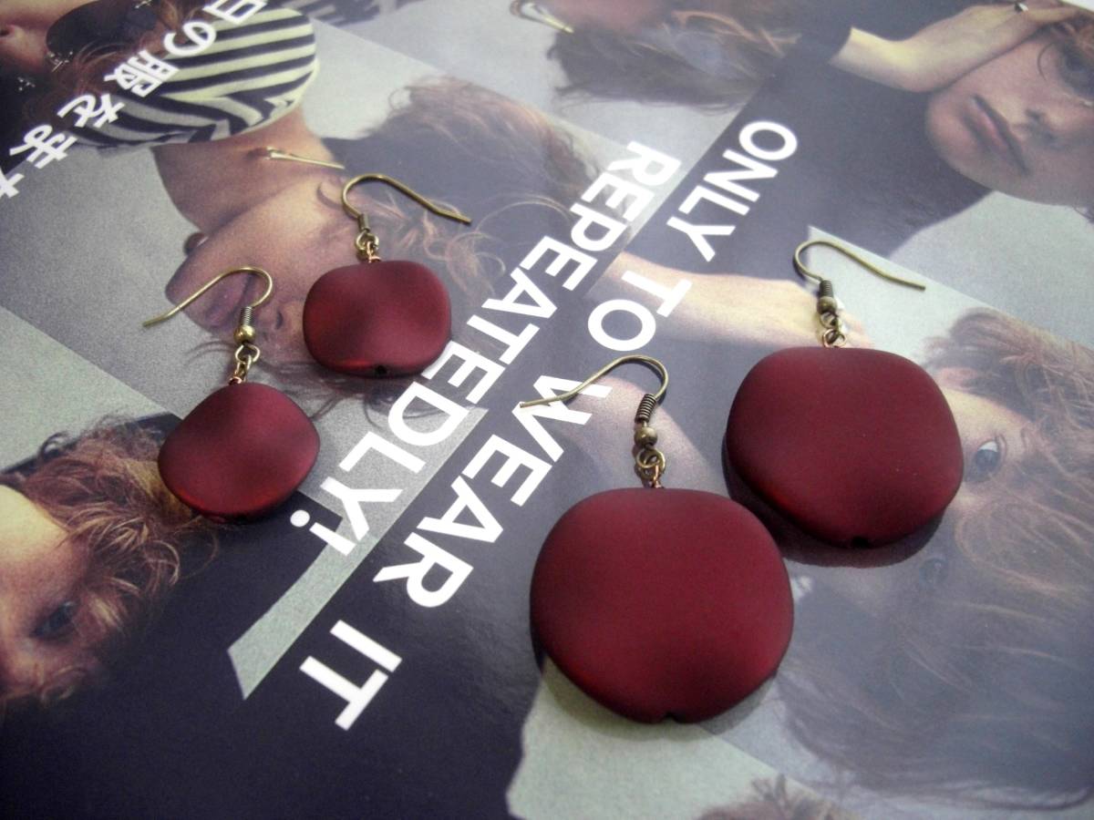 さりげなく個性的・・シリーズです♪お気に入りの色とデザインで・・シックな赤色の樹脂ビーズのピアスです♪大きさ違いのぺあ2組セットです♪組み合わせ を変えても可愛いです♪マットな深い赤のビーズがさりげなく華やかな表情です♪ウェーブコインの樹脂ビーズは20ミリ、30ミリの大きさ違いです♪長さは20 ミリの方が4センチ、30ミリの方が5センチです♪どちらもイヤリングに変更出来ます♪お色違いのシリーズやお揃いのネックレスも出品しています♪シンプ ルで飽きのこないいつまでも着けられるデザインを考えて作りました!ハンドメイド をご理解頂いて ノークレーム、ノーリターンでお願いします