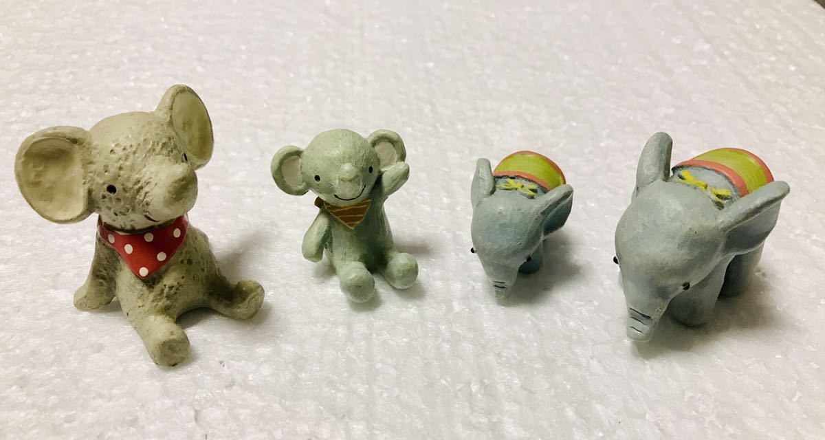 【4個セット】☆象さん☆可愛い陶器の置物☆北欧 オブジェ フィギュア インテリア 玄関先 ウェルカム ゾウ 親子 おしゃれ