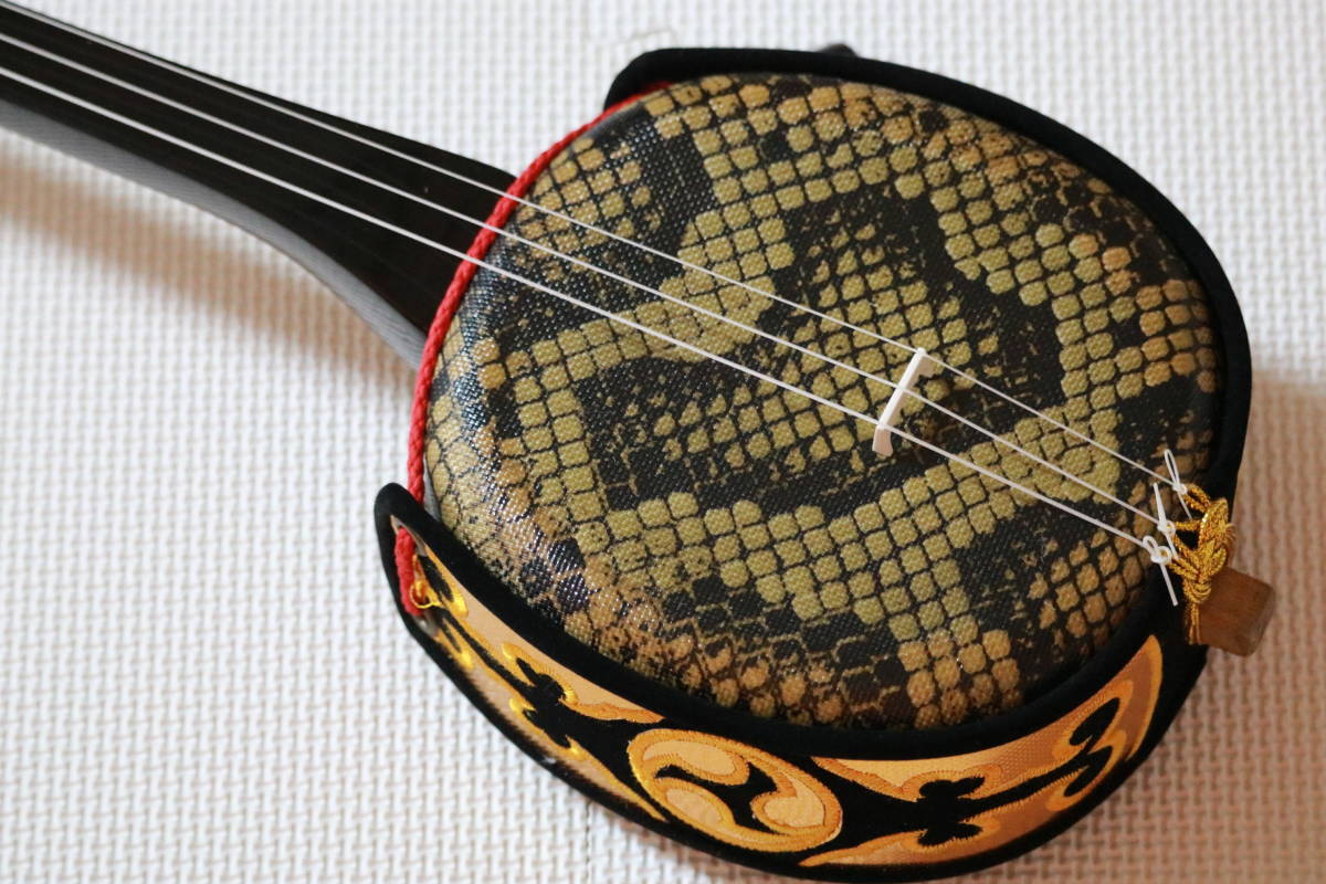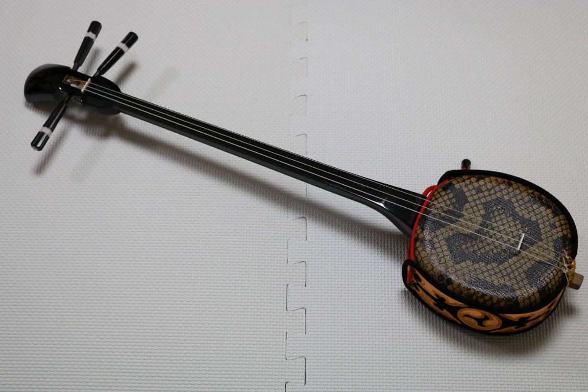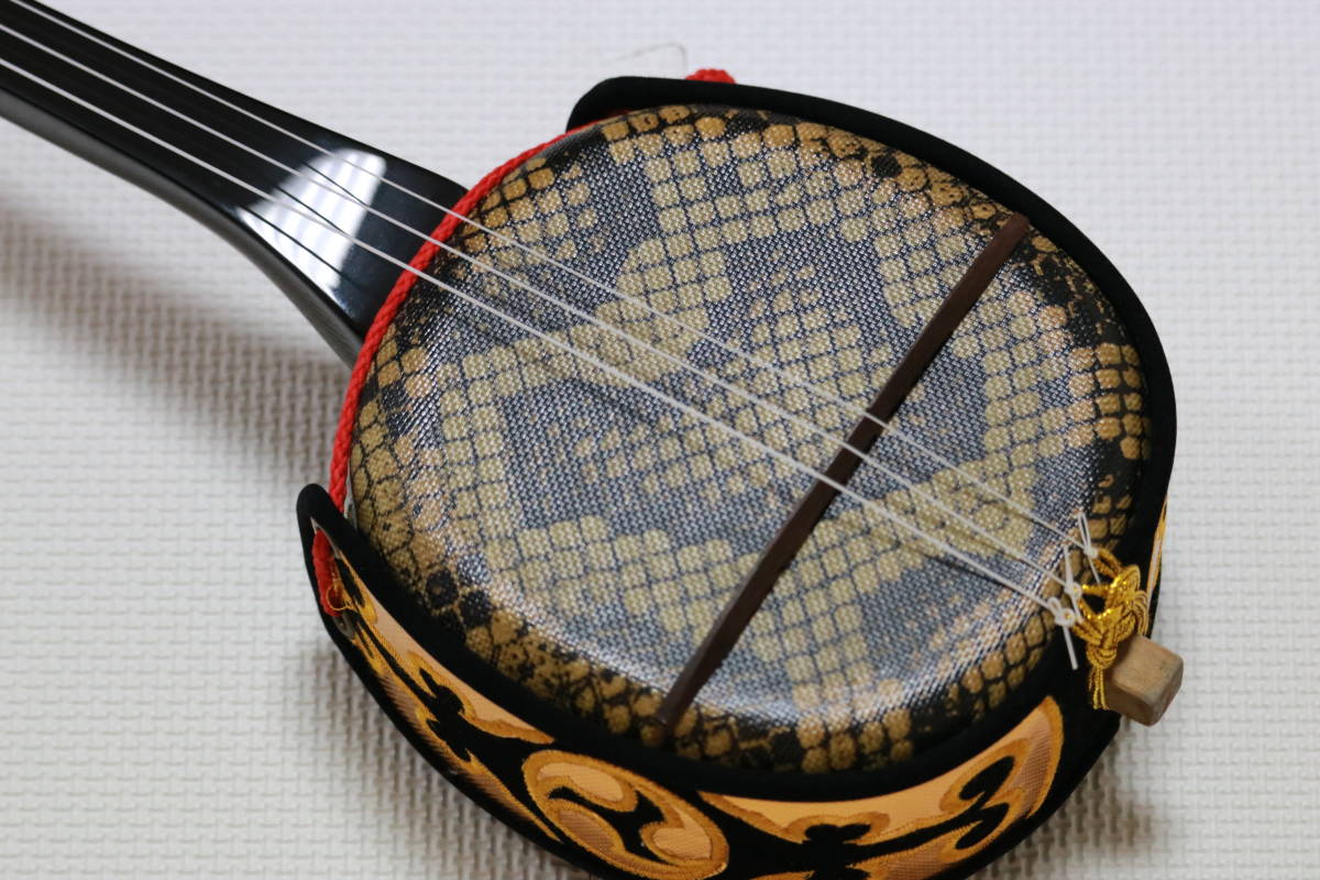 棹:真壁型(光沢のある高級感溢れる黒塗り)南洋木 胴:両面人工皮張り ※三線は、すぐご使用いただける状態で胴巻、カラクイ、弦、糸掛け、ウマ、すべてセティングされております。