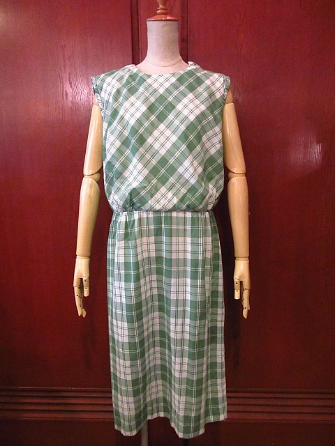 | ◆◇1970's Manford チェックノースリーブワンピース 緑◇◆ |