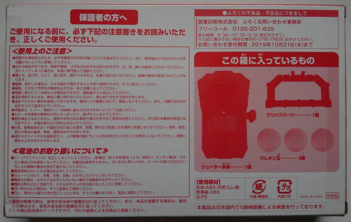 テレビマガジン 10月号 付録 のみ「 レーザーでねらえ!スーパーヒーロー ロックオンシューター 」未開封品になります。(※注意:本誌は付きません。※本誌についていたシューターや玉に貼るシールはありません。※電池別売り 単4×2本必要です。 )箱には最初から多少の傷みがあります。(画像参照)神経質な方はご遠慮ください。ご理解頂ける方のみご入札お願いします。発送方法は、定形外郵便(送料250円 ※梱包なし・厚さ3cm以内)、定形外郵便(送料350円 ※梱包あり・厚さ3cm以上)、レターパックプラス(送料370円 ※梱包なし・厚さ3cm以内)、レターパックプラス(送料520円 ※梱包あり・厚さ3cm以上)、ゆうパック60サイズ(送料は地域によって変わります)の中からお選びください。(※代金引換は対応しておりません。)郵送中の事故や破損、未着等に関しては責任を負いかねますのでご了承下さい。素早くお取引を行える方を希望致します。オークション終了後24時間以内のご連絡、5日以内に入金できる方のみご入札お願いします。落札後のキャンセルはお断りします。なお、24時間を過ぎてもご連絡がない場合は、「落札者の都合により落札者の削除」をさせて頂きますのでご了承ください。評価の悪い方や、連絡が遅い方は入札をご遠慮ください。落札後はノークレーム、ノーリターンでお願いします。