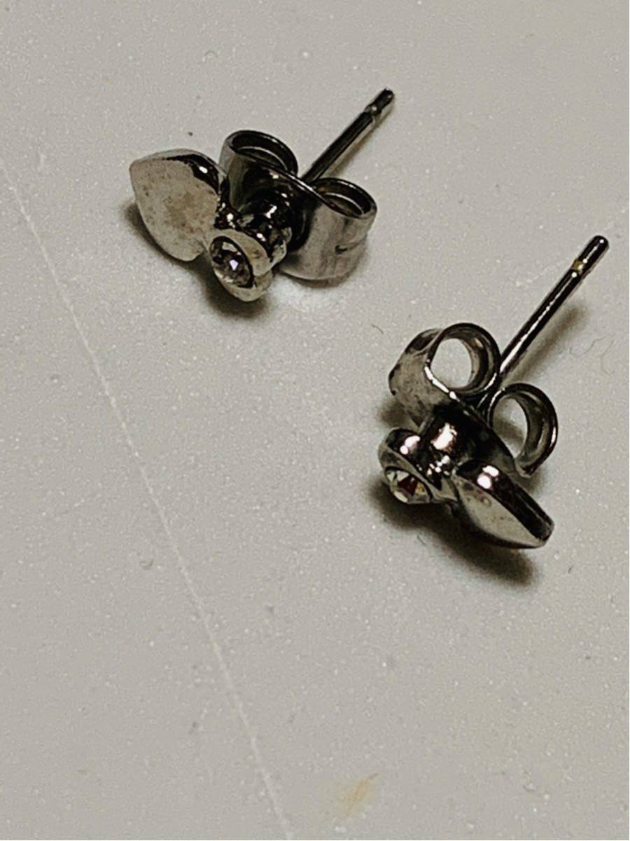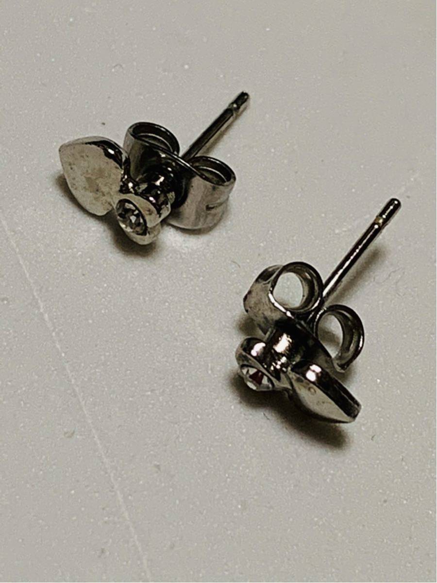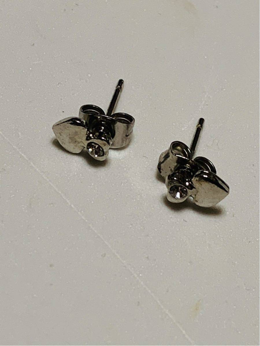小さなハートとジルコニアの、可愛いシルバーカラーのピアスです、サイズは7×5ミリです