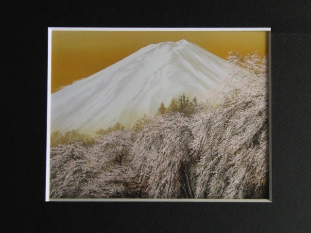 清水規、【桜花富士】、希少画集画より、状態良好、新品高級額装付、送料無料、日本画,yoni