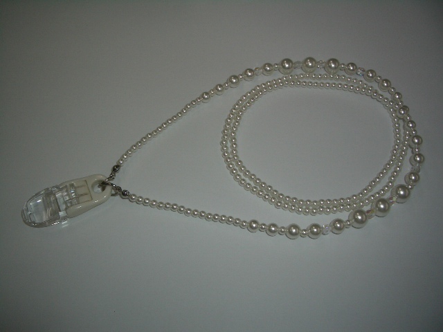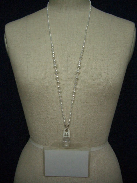 ネームカード用のネックストラップと言えば細い布やヒモなどで出来たものが多いですが、このネックストラップはパール(イミテーション)やビーズ等で仕上げてりとても綺麗です。