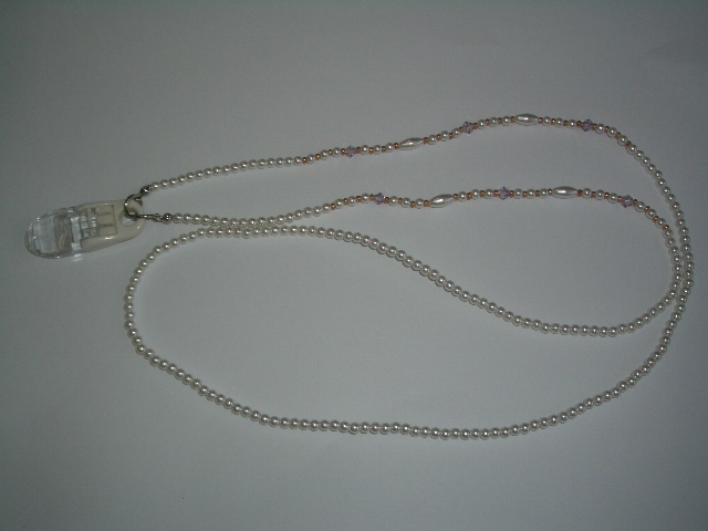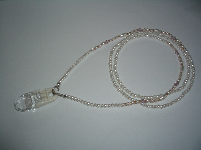 ネームカード用のネックストラップと言えば細い布やヒモなどで出来たものが多いですが、このネックストラップはパール(イミテーション)やビーズ等で仕上げてりとても綺麗です。