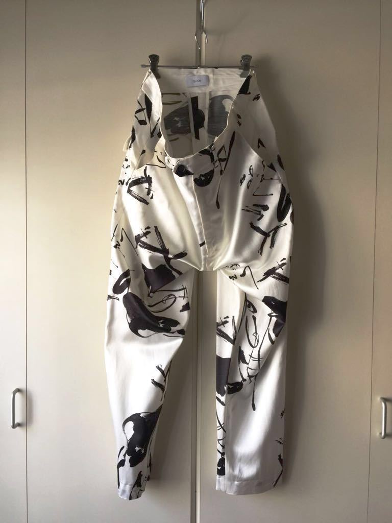 緩めでかつ綺麗めなテーパードパンツが好きな方には堪らない1本かと思います。オリジナルの柄、落ち感、ツヤとも一押しです。