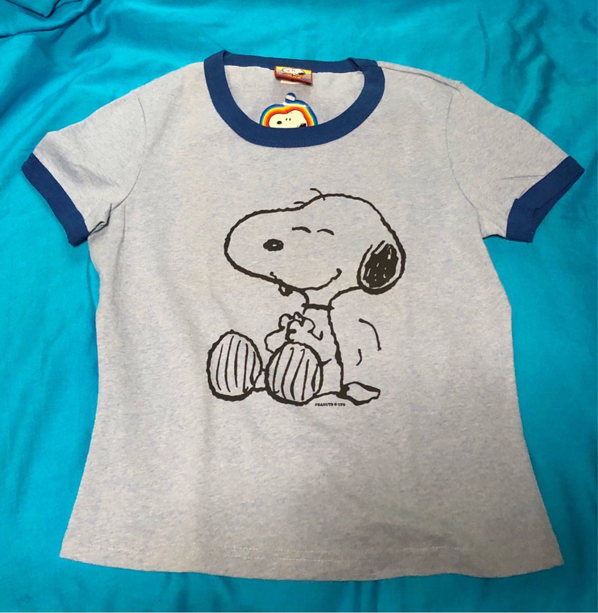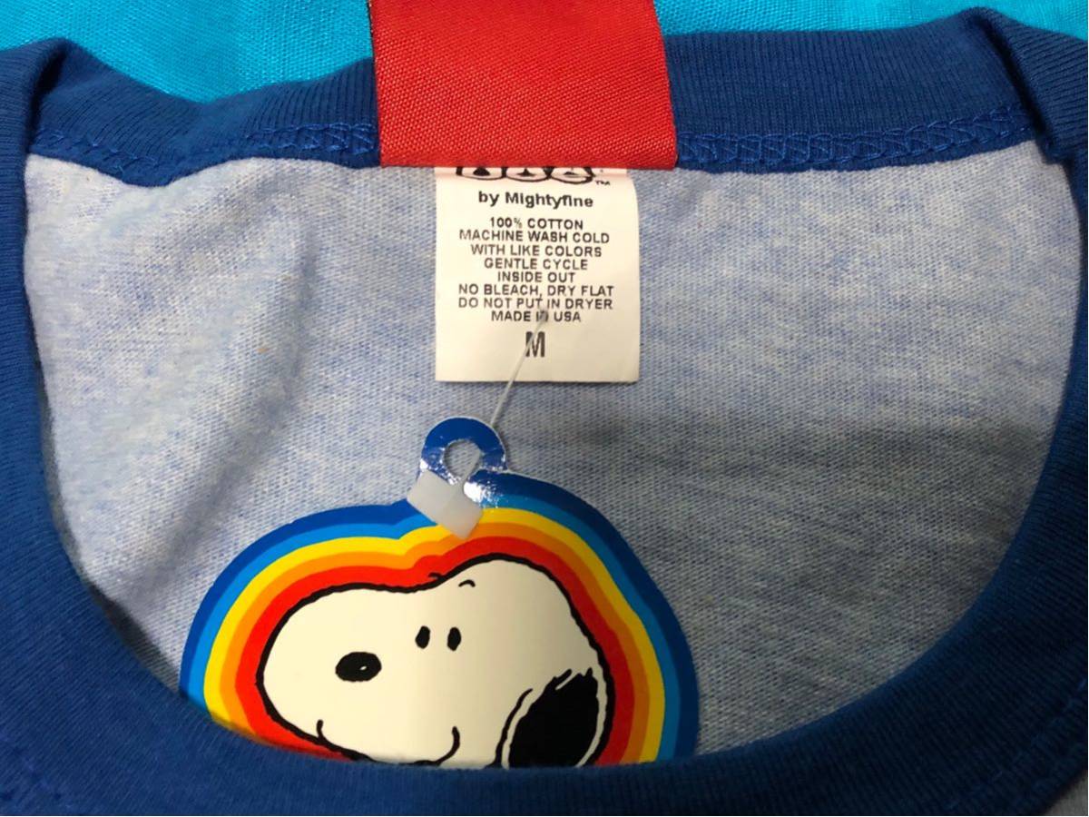 アメリカ製、スヌーピーTシャツです。サイズは肩幅約36センチ、身幅約42.5センチ、着丈約52.5センチ、袖丈約15センチです。ライトブルーの霜降りボディにブルーのトリムの付いたリンガーTシャツです。フロント、バックにプリントが入ります。巷に溢れる第三国製品では飽き足らないお父さん、お母さん!お子さんの普段着に贅沢な1枚いかがですか?貴重なアメリカ製です!