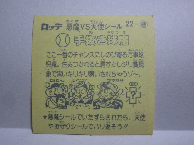 ビックリマンシールです。 手抜き球魔(てぬききゅうま)(悪魔)No.22 汚れあります。 |