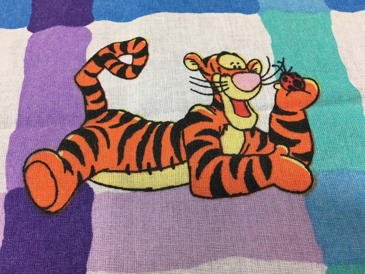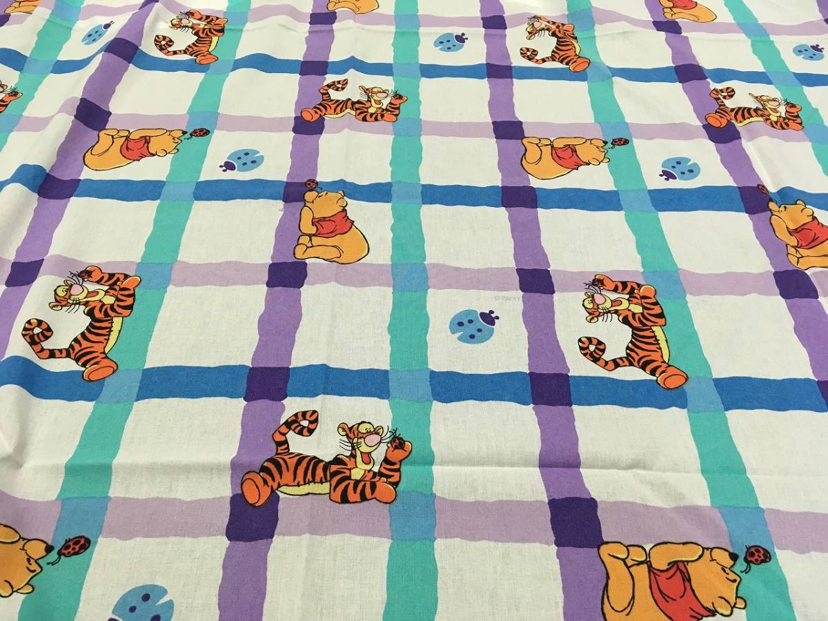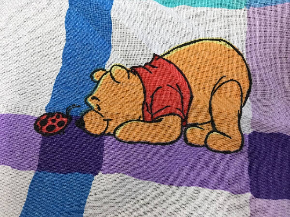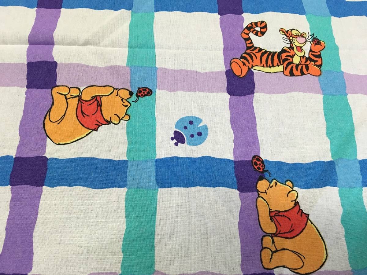 くまのぷーさんのフラットシーツ★紫 青 緑の格子柄