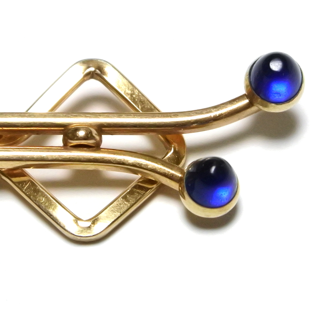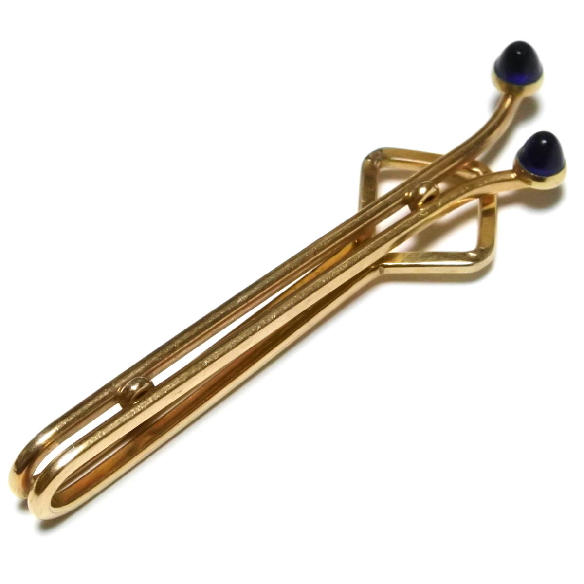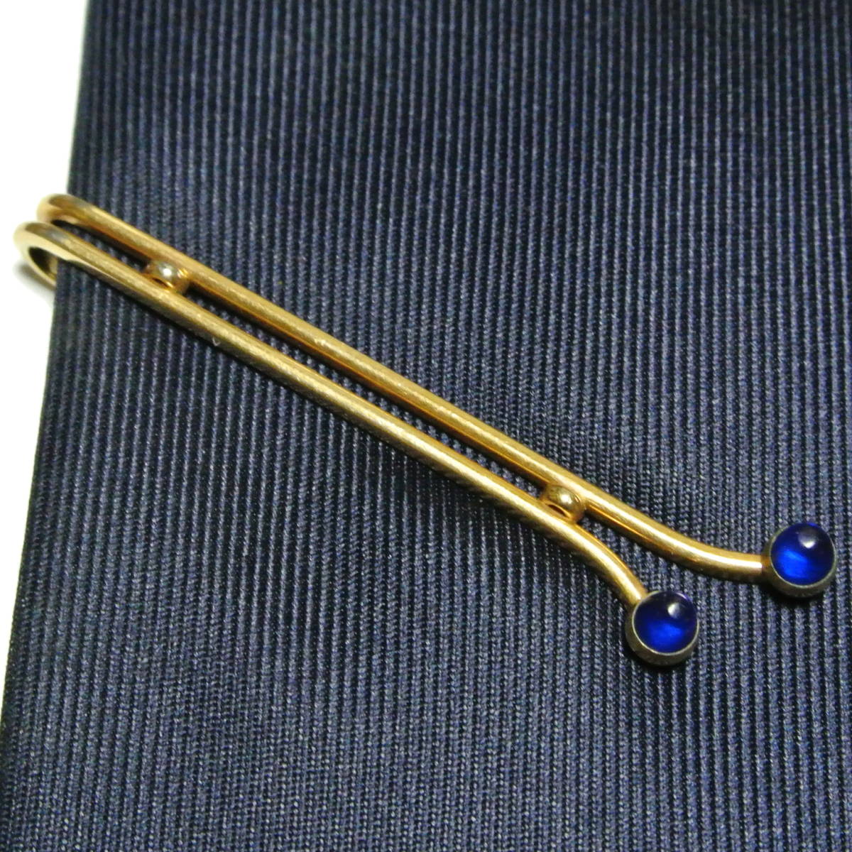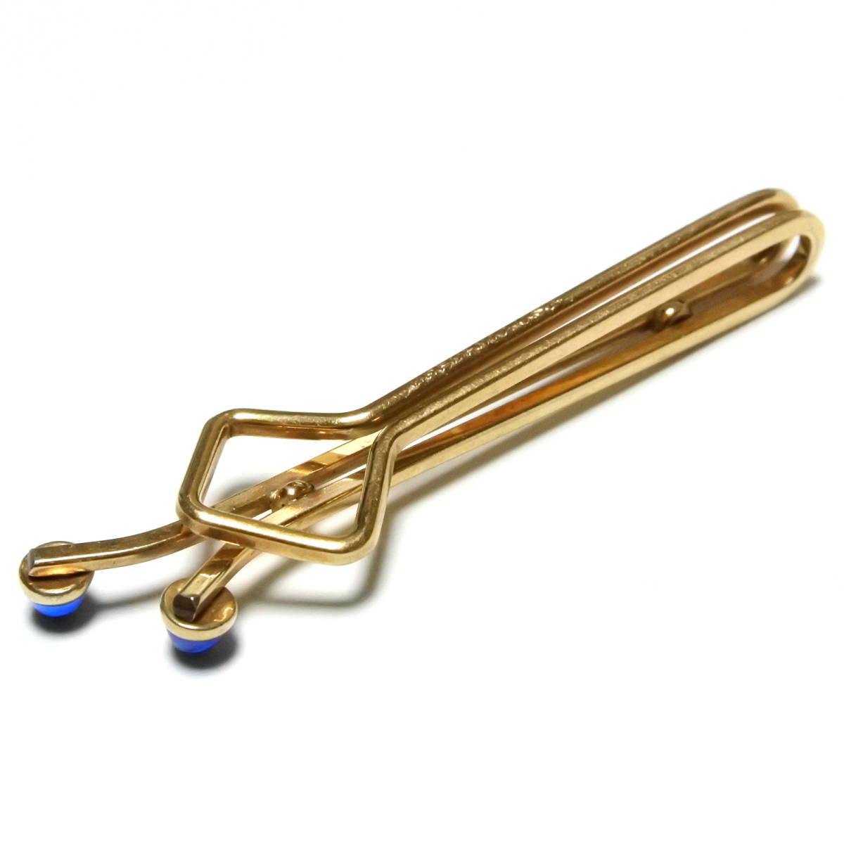 ブルー◆アメリカ KREMENTZ製 6.0cm ヴィンテージ タイバー 金 ゴールド 青 レトロ クラシック ネクタイピン クレメンツ