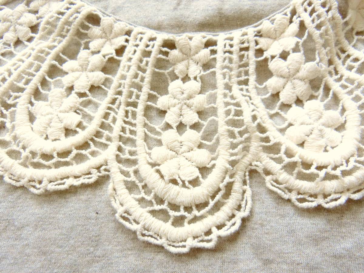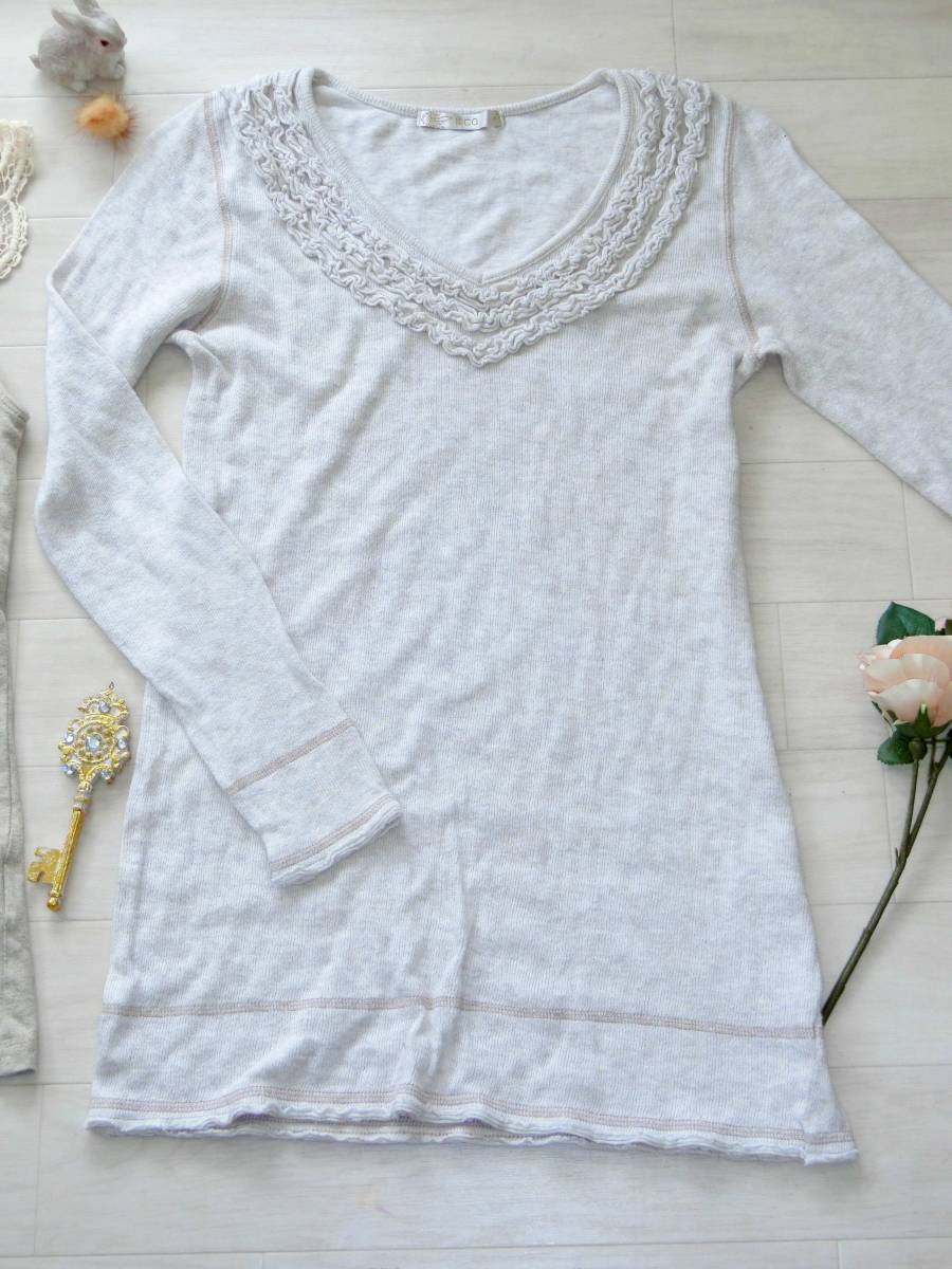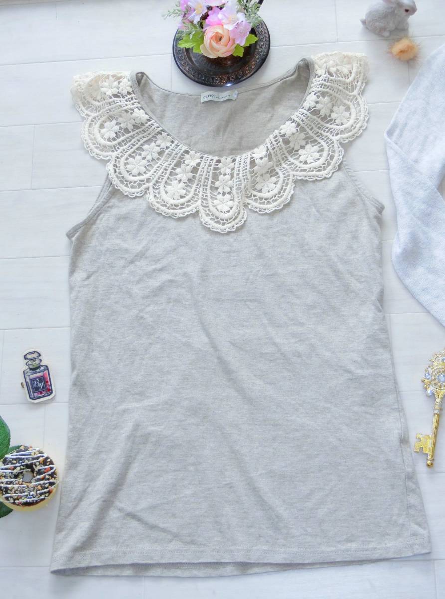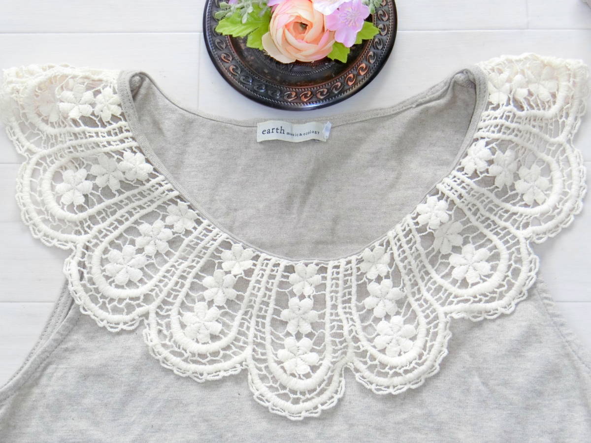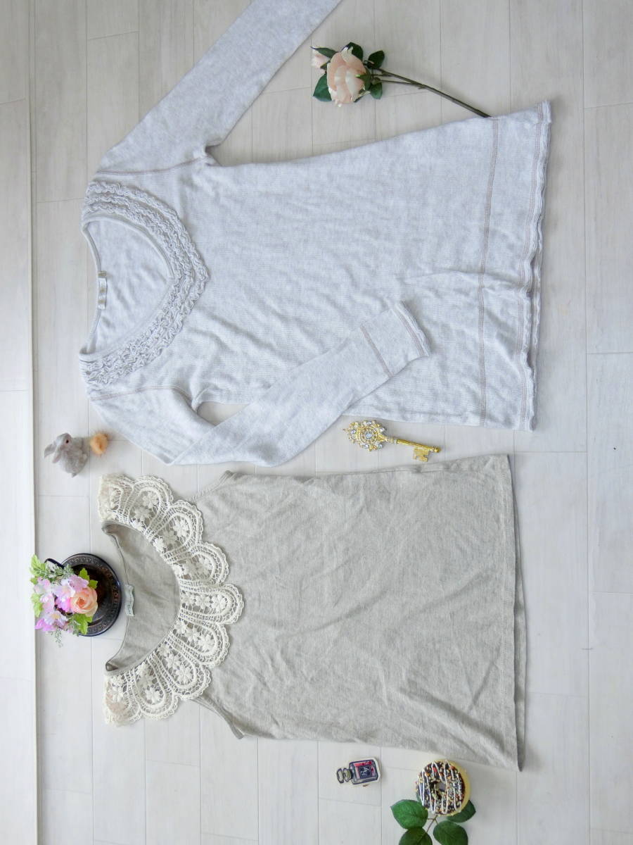 アースミュージックアンドエコロジー earth music&ecology★Ikka イッカ★鍵編みレース襟タンクトップ*長袖ニットチュニック*Mサイズ