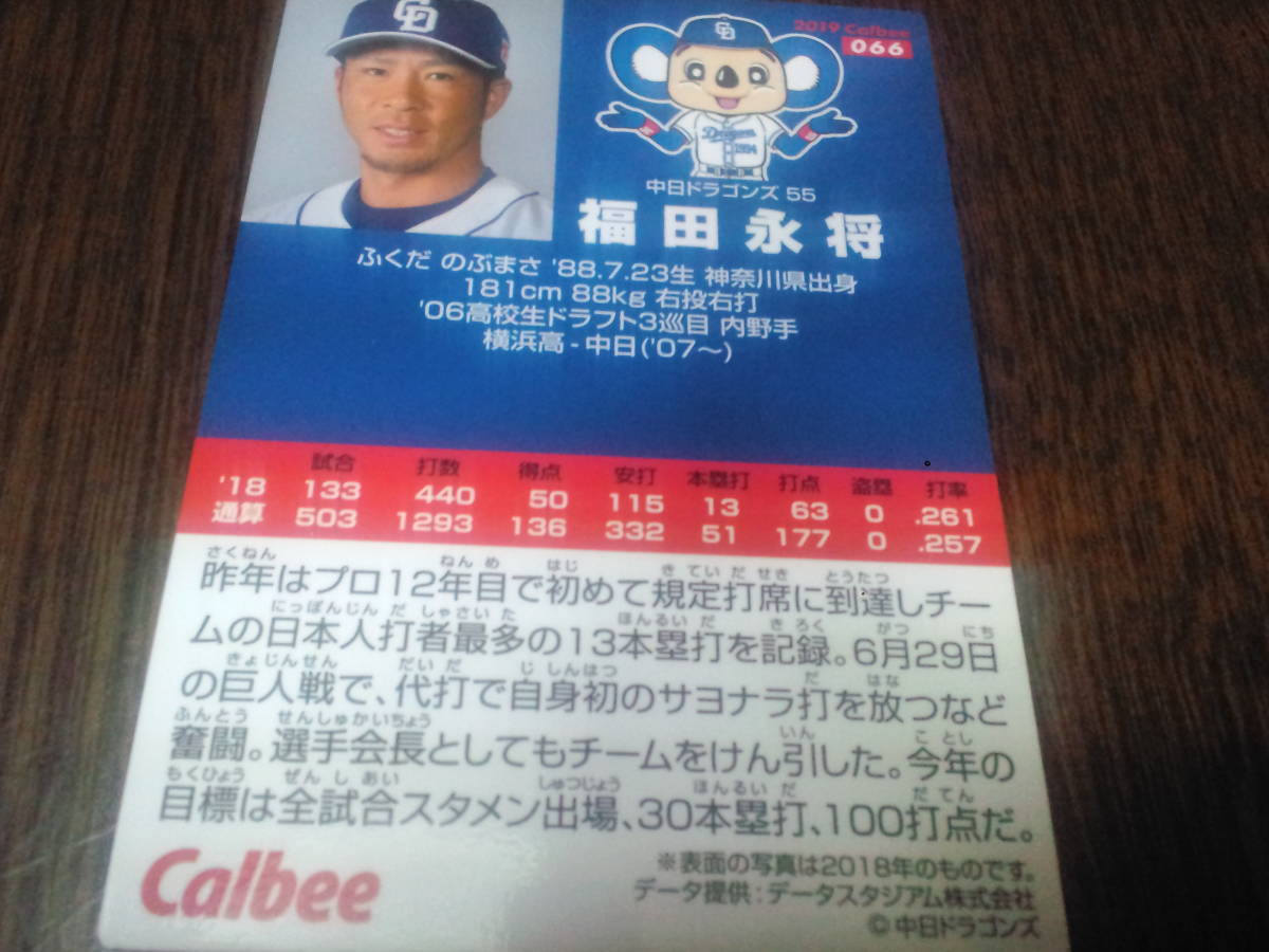 [同梱可]★福田永将(中日ドラゴンズ)★レギュラーカード(066)☆2019年カルビープロ野球カード
