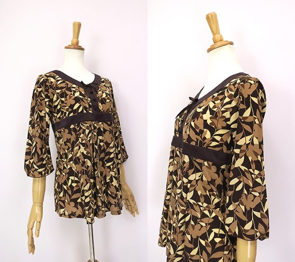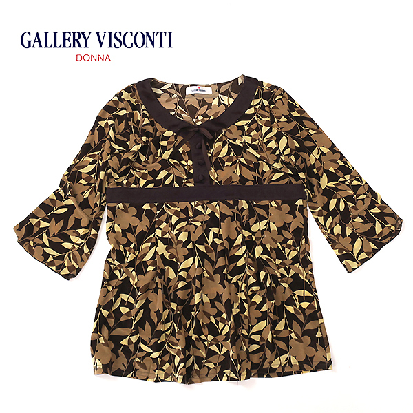 ギャラリービスコンティ 秋色ボタニカル総柄◎フレア袖カットソー 2(M)