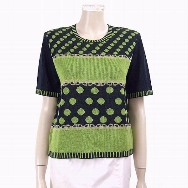 ![]() ![]() 落札後はオークション終了のお知らせメールに出品者からのメッセージが御座います。 自己紹介欄には急な休み等の記載をする場合が御座いますので一度お目通し頂きます様お願いいたします。ご一読の上オークション終了後2日以内の連絡、 落札後4日以内のご入金のお約束を守って頂ける方のご入札をお待ちしております。 小さい子供がおりますのでお急ぎのお取引を希望される方のご入札は遠慮下さいませ。 ---↓ここにブランド名記入---- ブランド名:MICALADY ミカレディ ---↓ここに特徴記入---- 特徴:鮮美色なリーフグリーンが際立つサマーニットです。ネイビー系を基調にリーフグリーン系のドット&ゴールド系ラメ入り柄。涼し気リネン混の程よい透け感ある半袖ニットカットソーです。 ---↓ここにサイズ記入---- サイズ :Mサイズ 表示(トルソーは9号です) 実寸(平置き採寸) 肩幅39cm、身幅48cm、袖丈26cm、ウエスト47cm、着丈53cm ---↓ここに素材記入---- 素材 : アクリル70% 麻30%(スリット糸使用)