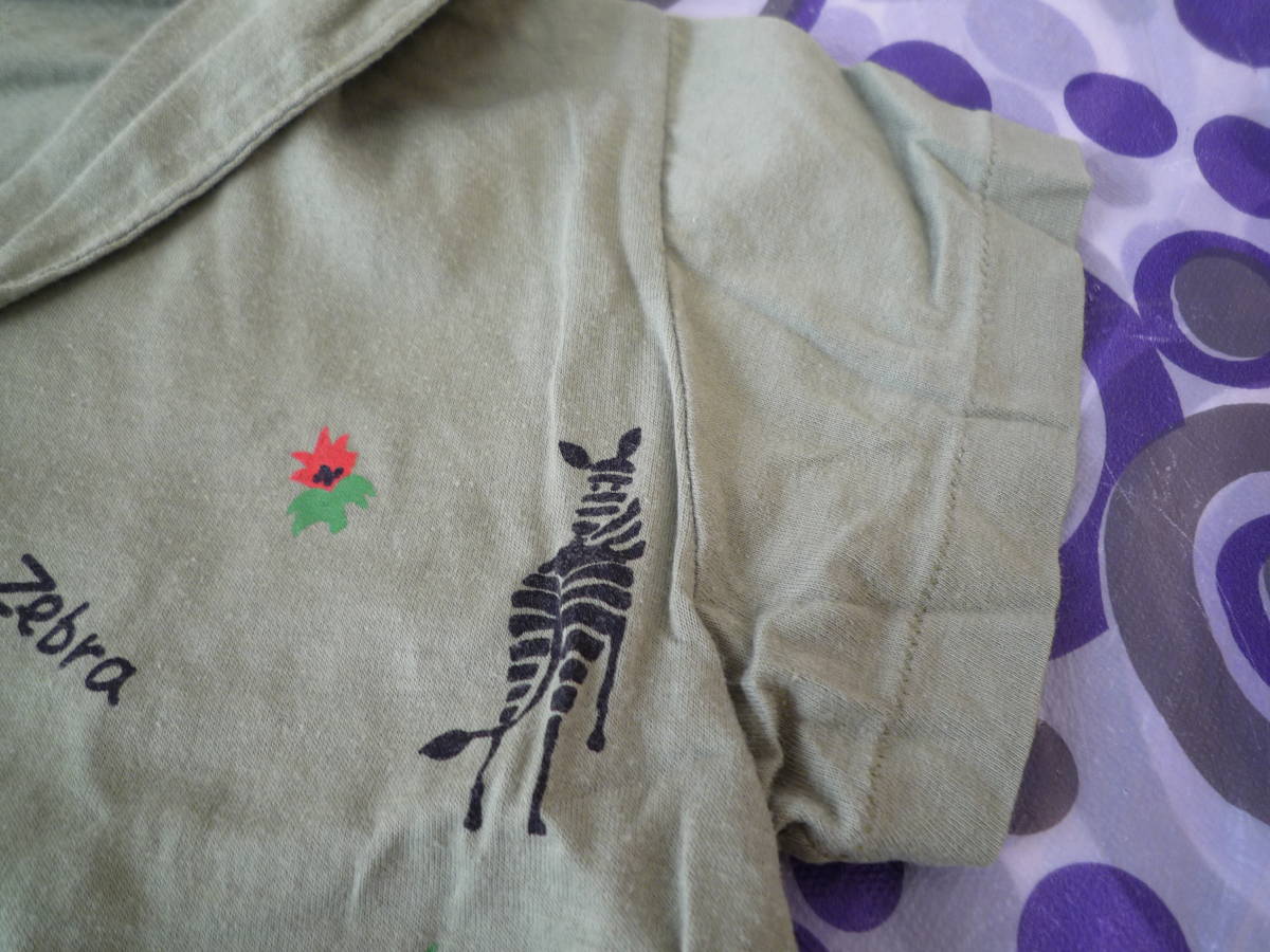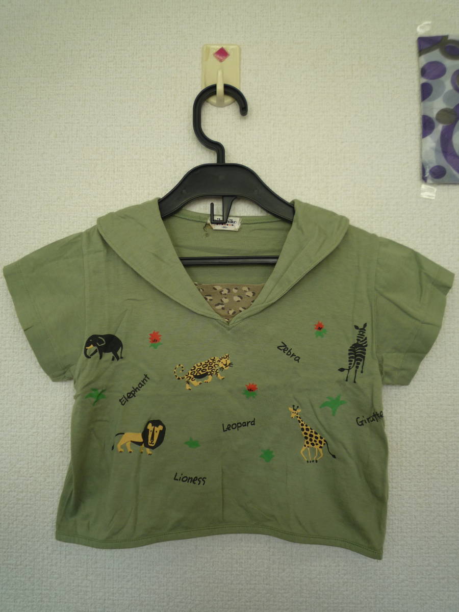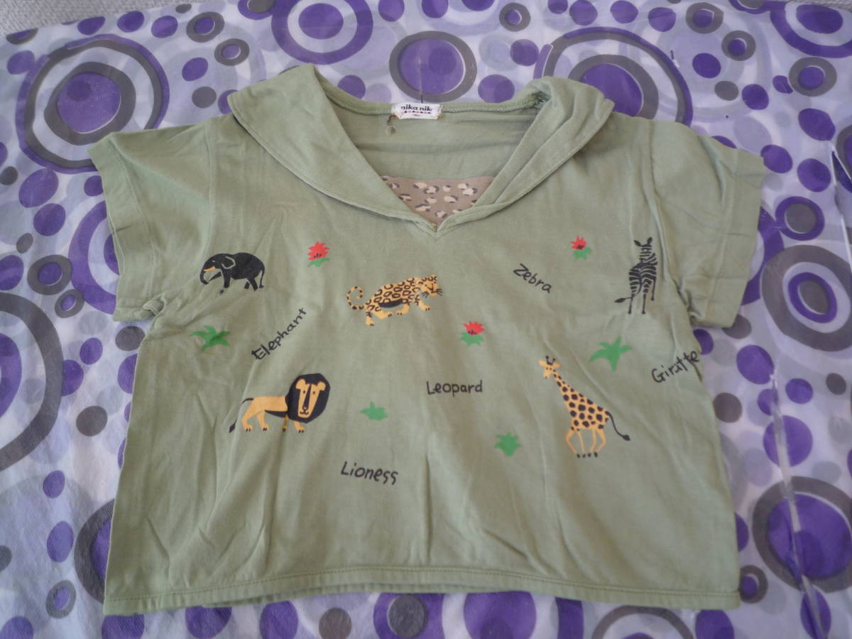 ★nika nika 衿付き半袖 動物Tシャツ ぞう きりん しまうま 黄緑色(95)