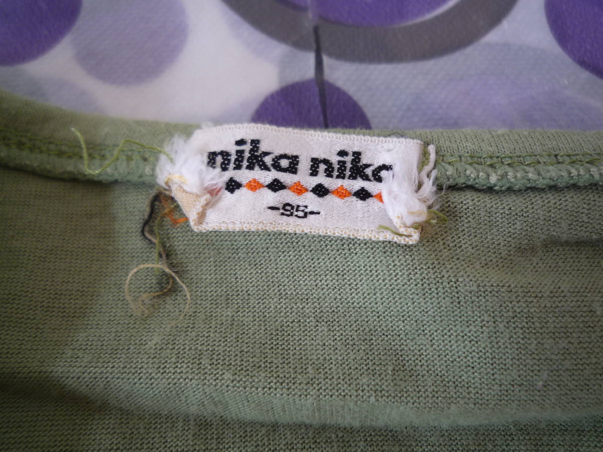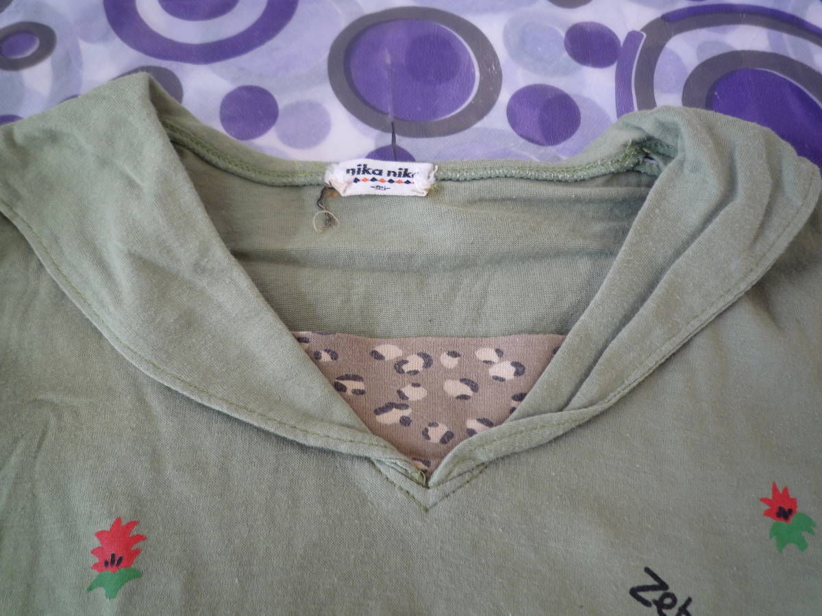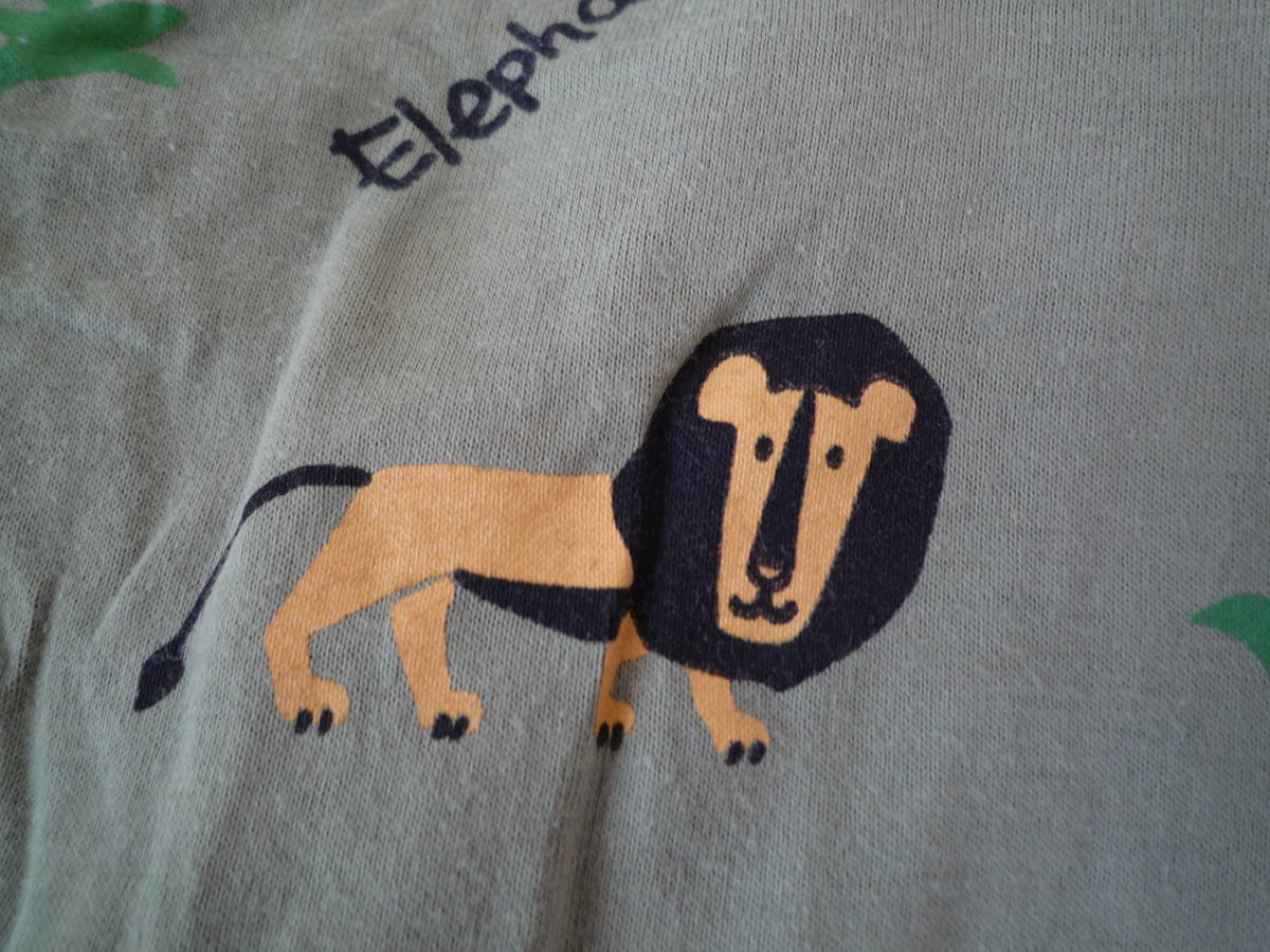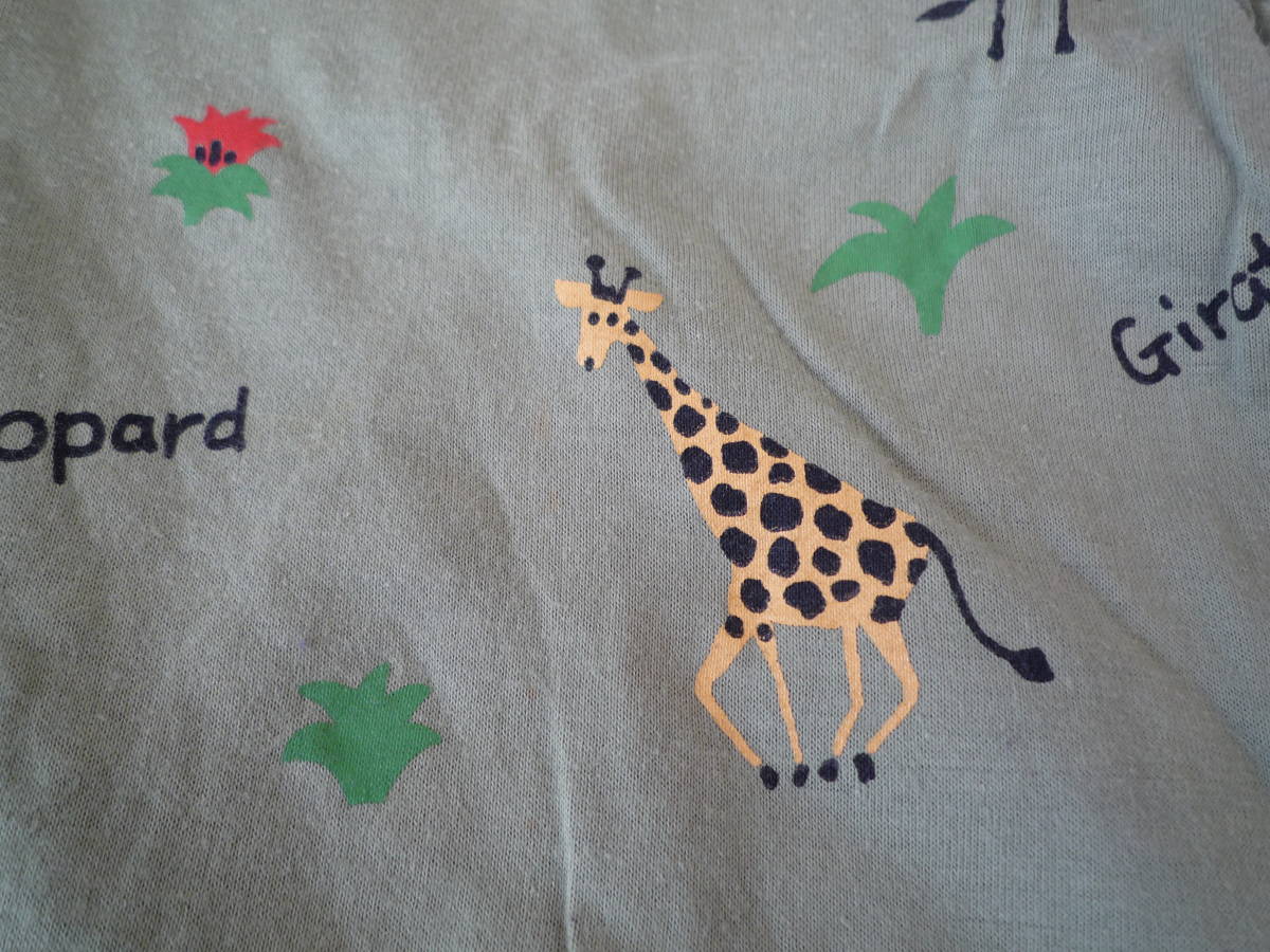 ★nika nika 衿付き半袖 動物Tシャツ ぞう きりん しまうま 黄緑色(95)