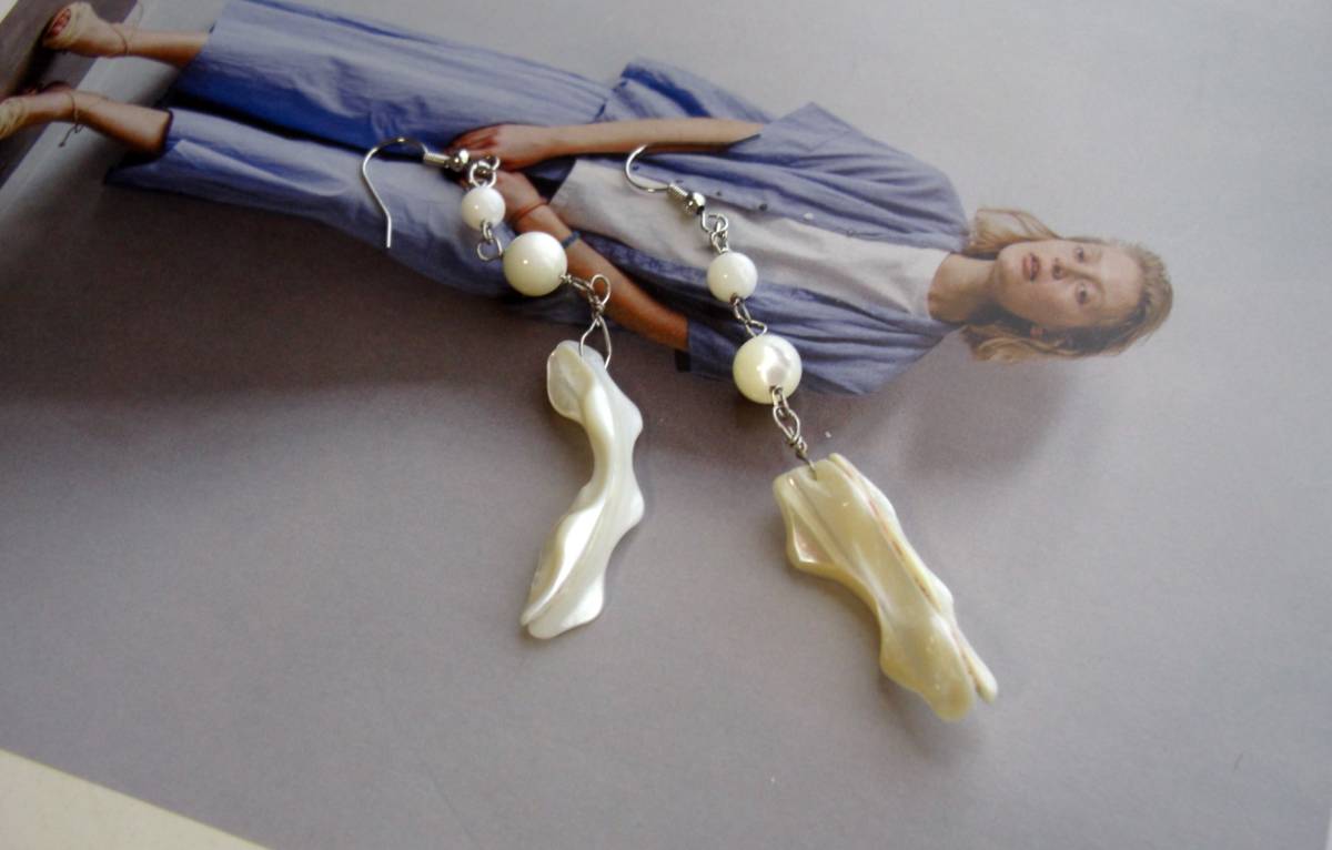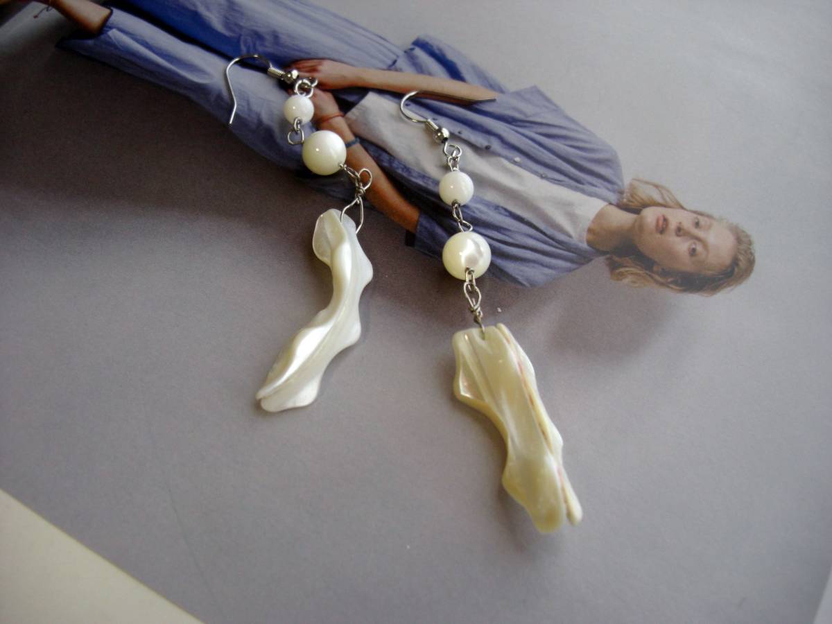 夏色・見本帖・・シリーズです♪シェルの存在感・・やさしいオフホワイトのシェルビーズのピアスです♪丸玉と不揃いのシェルを合わせて個性的な表情で す♪6ミリ、8ミリの丸玉に長さ3・6センチ位の不揃いシェルを合わせました♪長さは全長9・7センチ位です♪イヤリングに変更出来ます♪お揃いのネック レスも出品しています♪シンプルで長く着けていただけるデザインを考えて作りました♪ ハンドメイドをご理解頂いてノークレーム、ノーリターンでお願いします