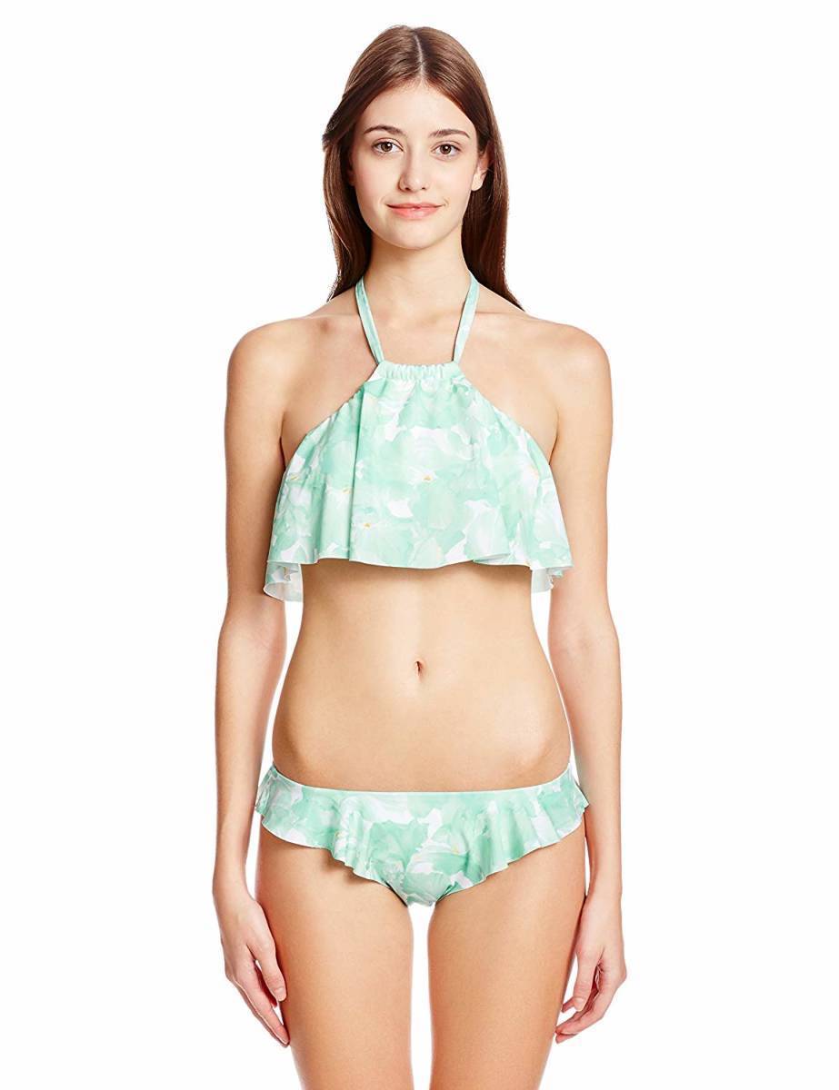 新品 ブランド水着 PEAK&PINE ピークアンドパイン 168032 カラフルポップなフレアー ハイネックブラ×フレイヤー ショーツビキニ水着 サイズ9Mです。