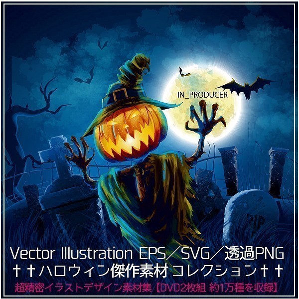 DISC2枚組●限定特価 『ハロウィン素材集』EPS/SVG/PNG/JPG収録 ハロウィンイベントのポスター/フライヤー/商品のPOP作製に デザイン集!